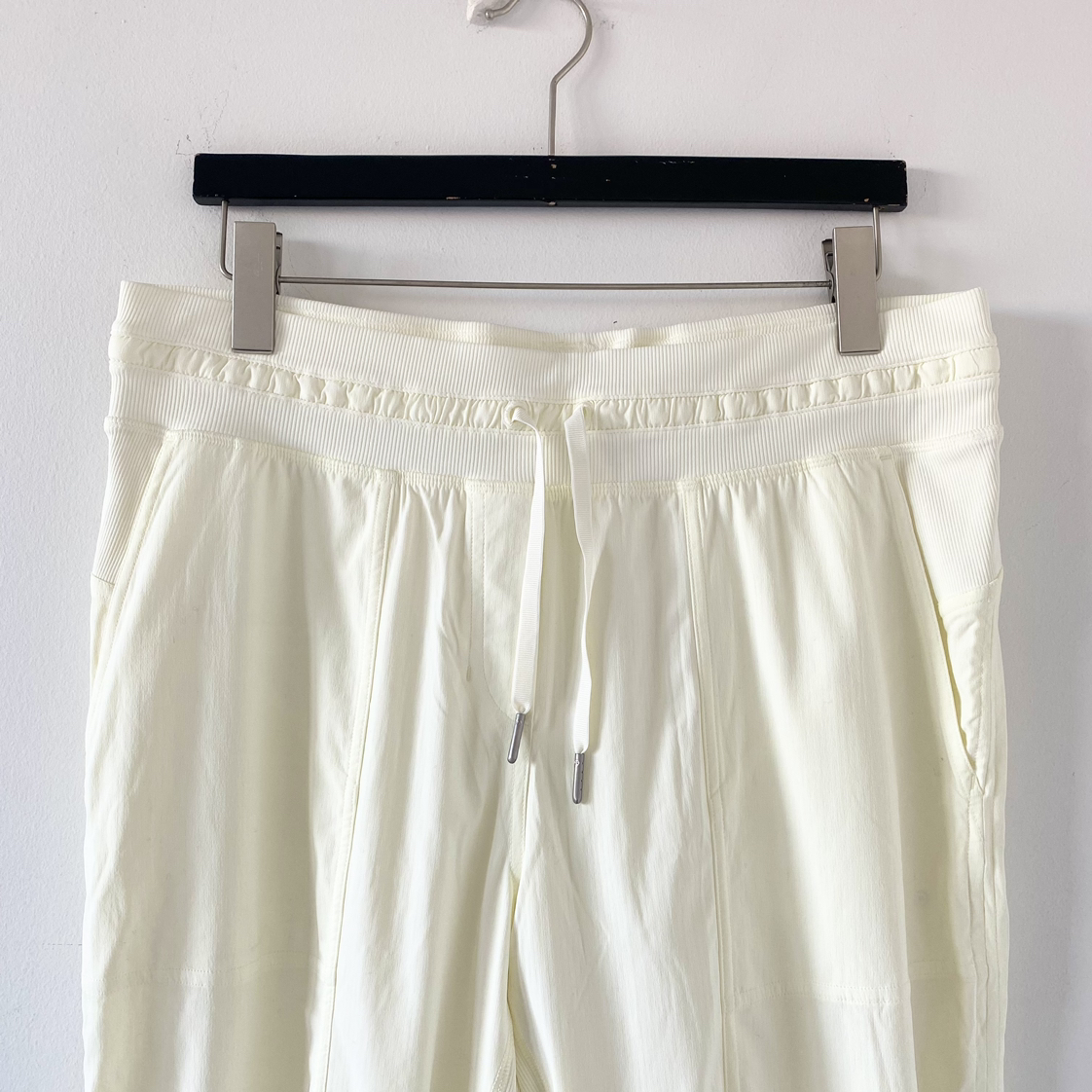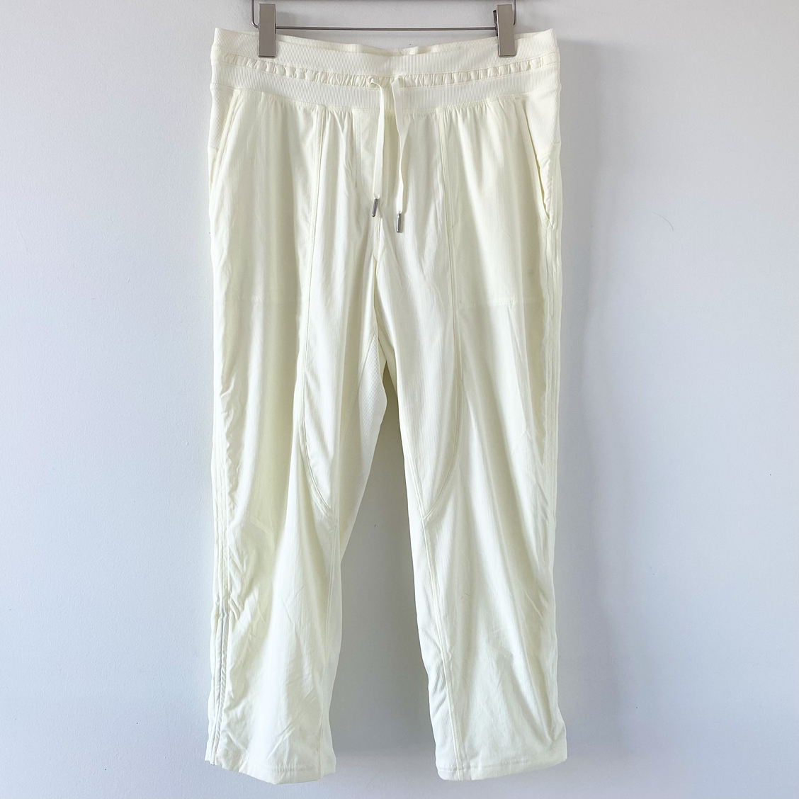 New without tag Lululemon Dance Studio pants in Lemon Sorbet colour. Woven for strength and no-bulk performance, lightweight swift fabric is two-way stretch and sweat-wicking to move with you and stay out of your way. Elasticated drawstring at the waist and adjustable side seam ruching detail. Fully lined with lightweight stretchy fabric. Size 10 Approximate measurement laid flat Waist 16.5” Rise 11” Inseam 25”