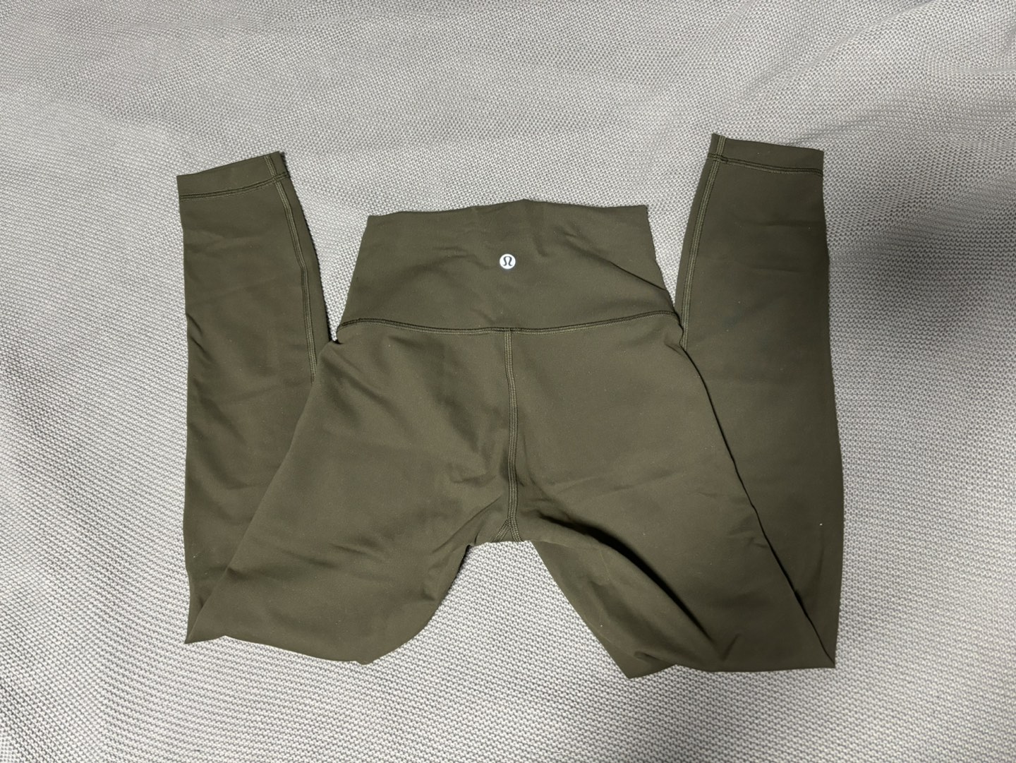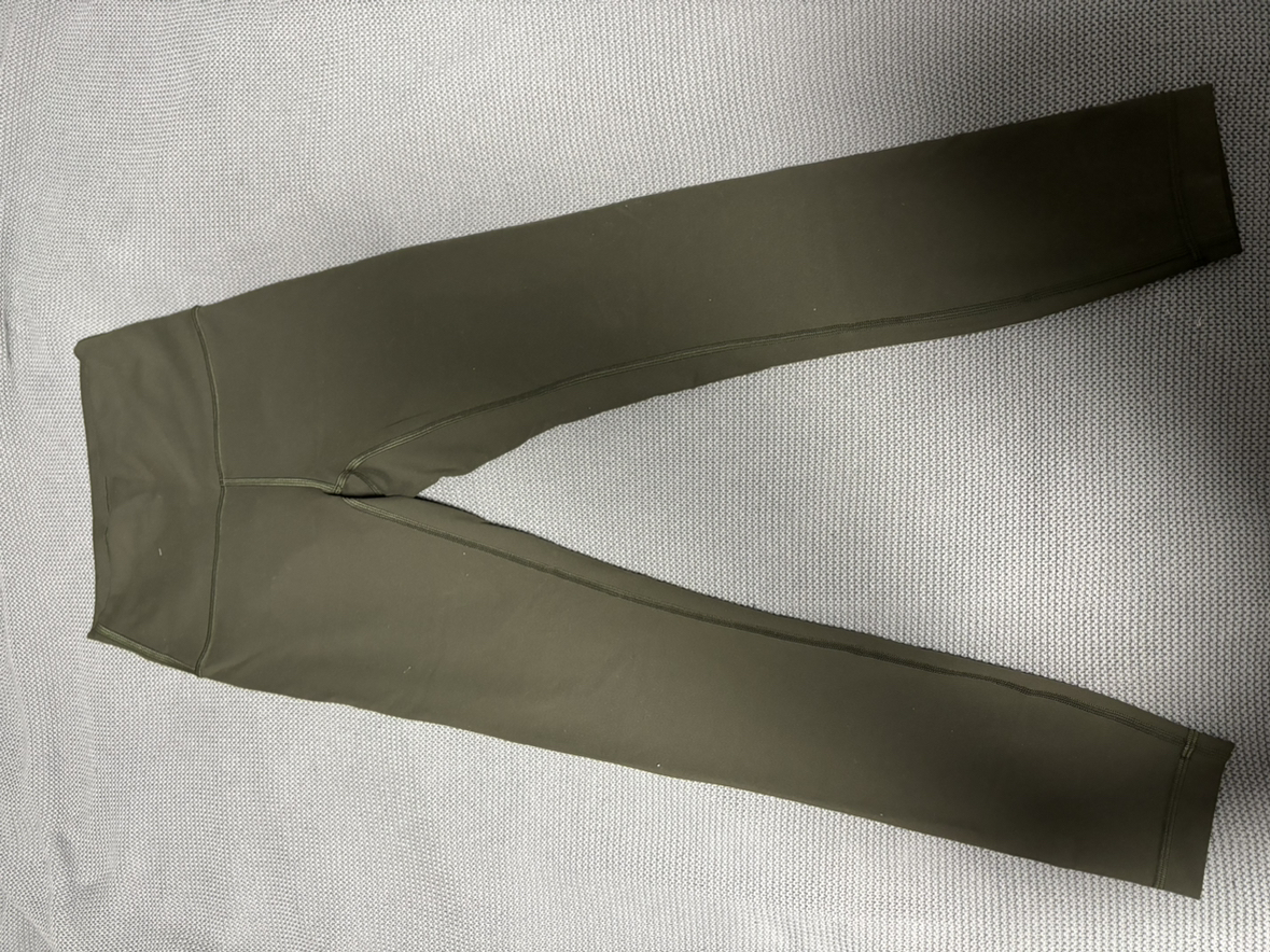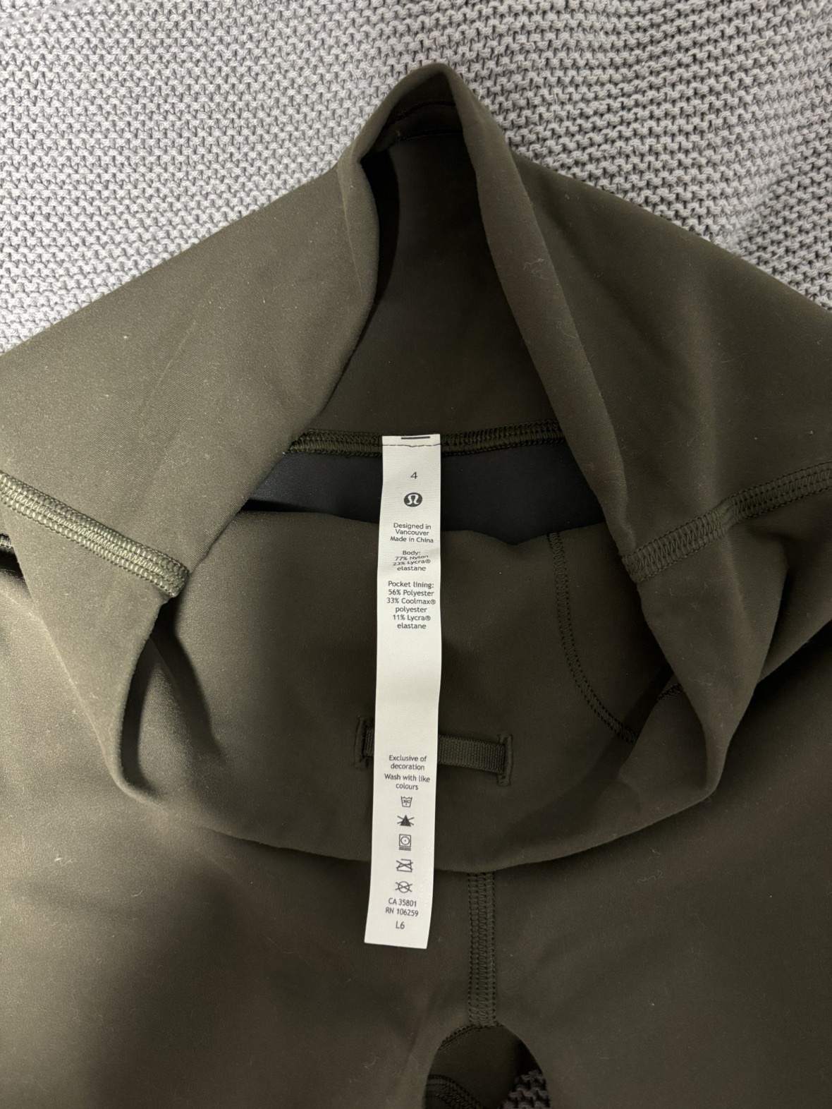 38Retail $98. Colour is dark olive. Smoke free pet free home. Purchased last year pre-pregnancy but never worn - gained weight and can no longer fit into these. See lululemon site for more details: https://shop.lululemon.com/en-ca/p/womens-leggings/Wunder-Train-HR-Tight-25/_/prod9750215?color=26083