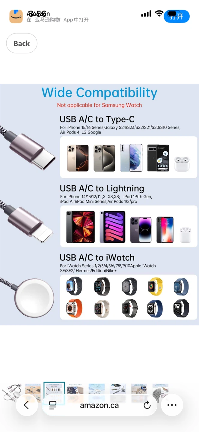 3 in 2 Charging Cable for iPhone, iWatch, USB-C
