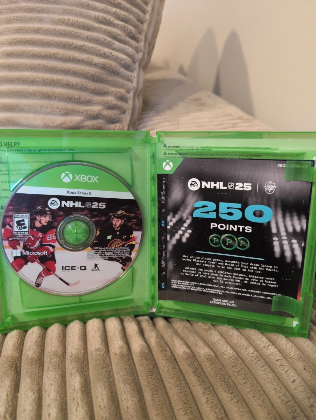 Buy & SellEA Sports NHL 25 for Xbox Series XEA Sports NHL 25 for Xbox Series X$15Excellent condition EA Sports NHL 25 video game for Xbox Series X. Includes a code for 250 points. Rated E for Everyone 10+.ConditionLike newWHERE TO MEETCheck LocationView MapSELLERverifiedkayneShawnessy972 reviews0 chats·0 favorites·2 viewsSEND CHAT TO SELLERHi kayne! I’m interested in your listing.Hi kayne! I’m interested in your listing.Get the Karrot app to chatSign In to chat