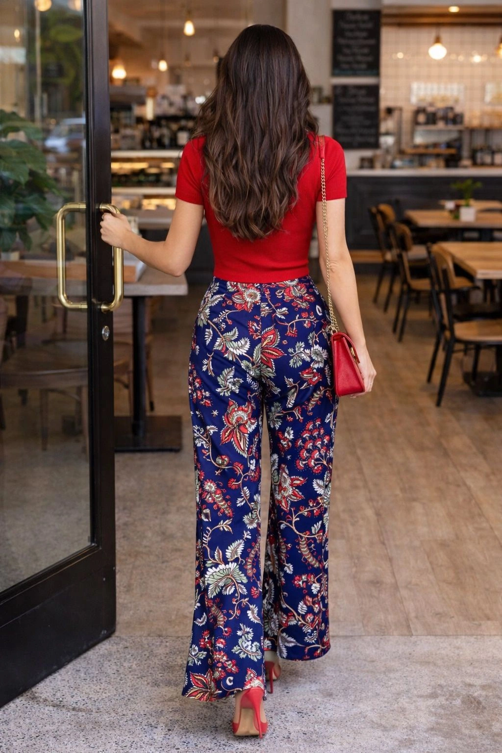 Super flattering Maze Navy Floral Soft Wide-Leg Pants – Size M