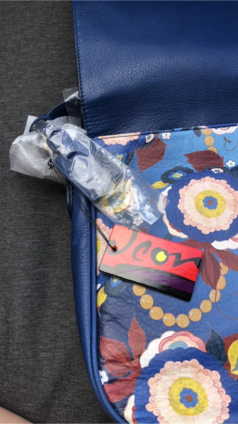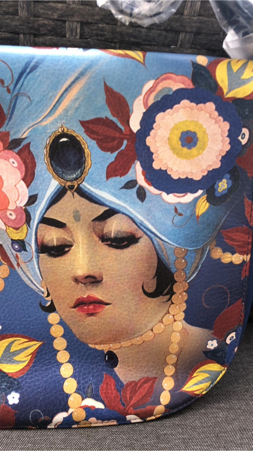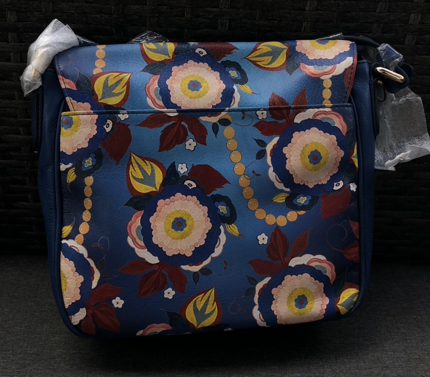 510Beautiful crossbody bag. Features vibrant floral artwork and Alberto Vargas signature. New with tags. Adjustable strap. Blue leatherette material. Genuine Leather. Brand NEW! Self pickup at Coquitlam Parkway Blvd