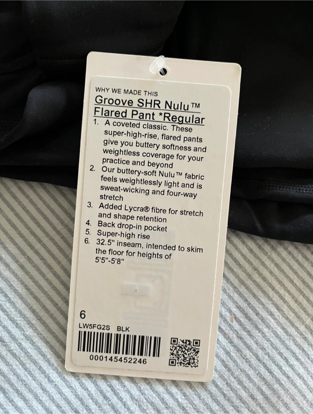67Lululemon Groove Nulu Super-High-Rise Flared Pant. Black. Size 6. Bought long size but missed return/exchange window