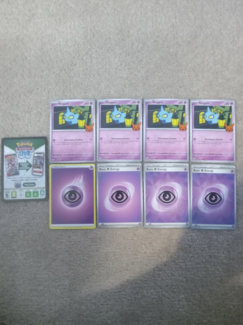 Selling a playset of ×4 Shuppet Cards from the 2023 Trick or Trade playset plus some psychic energy cards to help get started