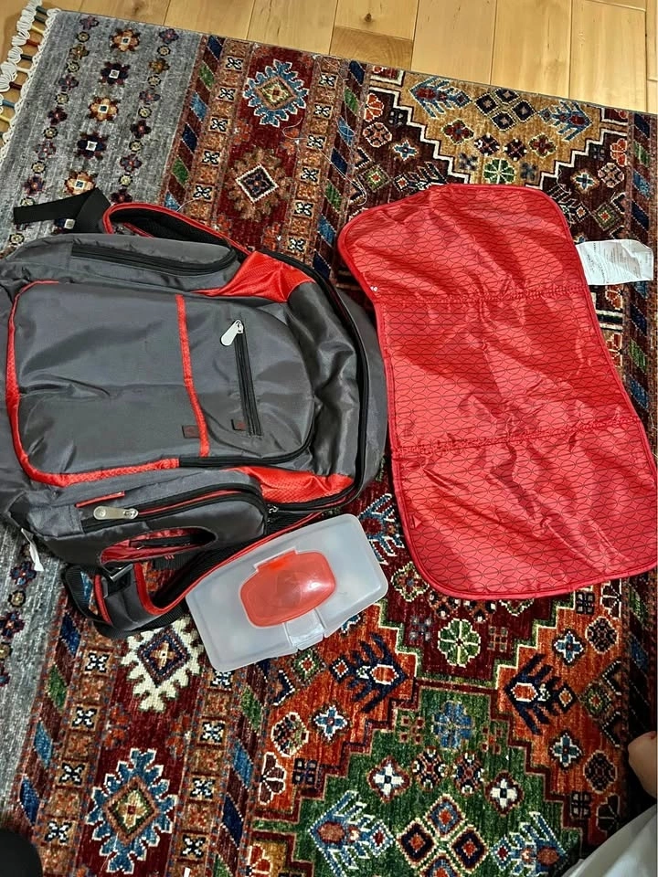 This bag includes a foldable mat that can be used to change the baby’s diaper, side pockets on both sides, large capacity, and high-quality waterproof material. Pick up from Kingston and morning side.