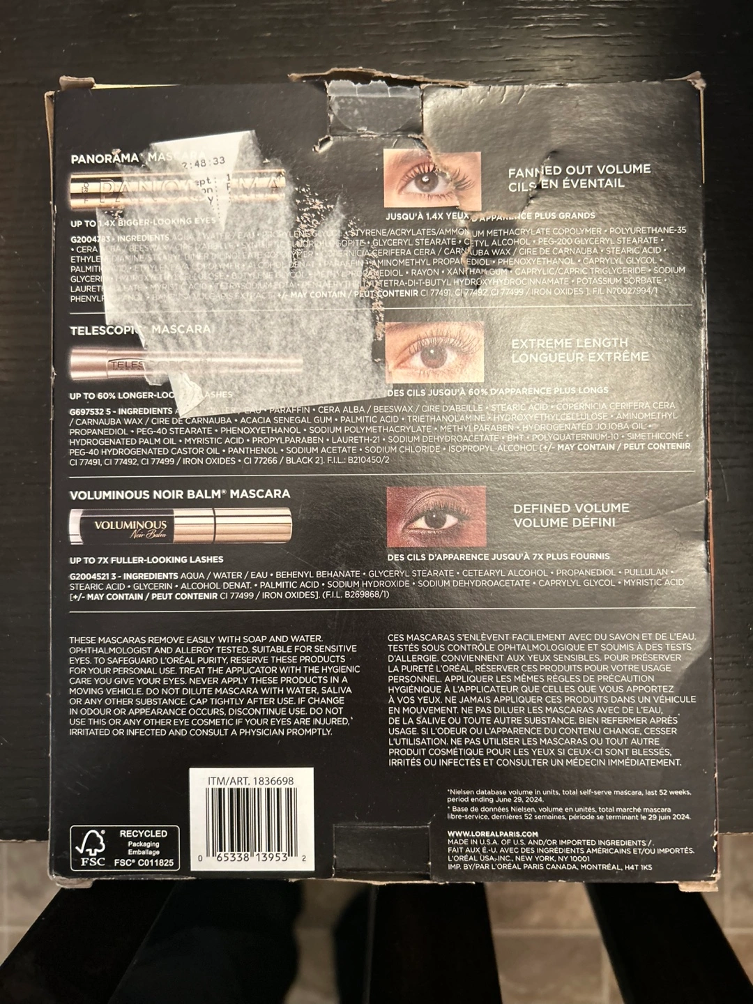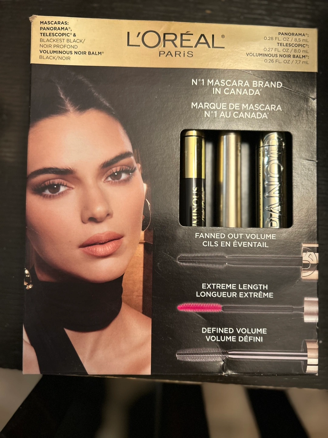 New L'Oréal Paris mascara set. Includes three different mascaras: Panorama, Telescopic, and Voluminous. Fanning, lengthening, and volumizing effects. Perfect gift or for personal use.