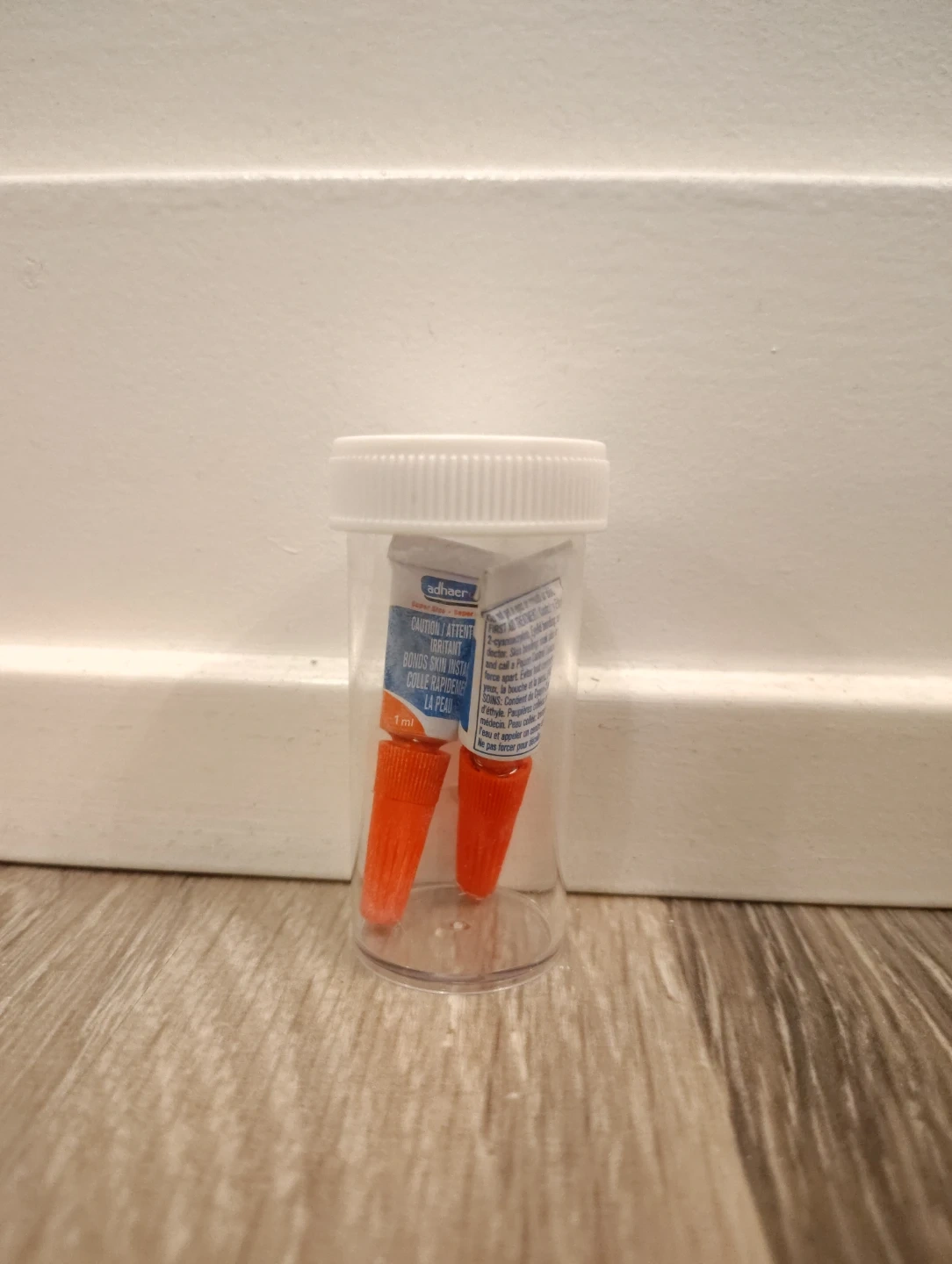 This is a two-pack of Adhaer instant super glue. Each tube contains 1ml of adhesive. The glue bonds quickly.