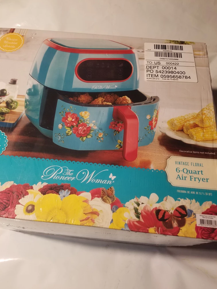 I'm selling a brand new Pioneer Woman Vintage Floral 6-Quart Air Fryer! It's still in its original packaging. This air fryer has a beautiful floral design and is perfect for cooking your favorite foods with less oil. It's a great addition to any kitchen!