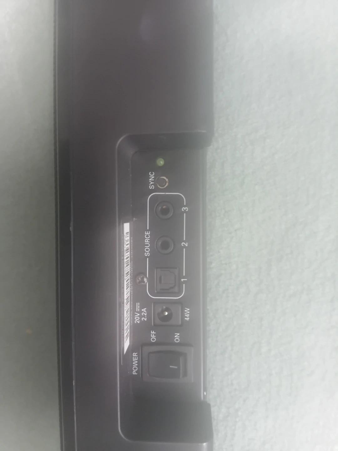 Polk Audio soundbar. Black colour. Has multiple input options like optical and aux. Also has Bluetooth connectivity. 44W power output. Power cord not included.
