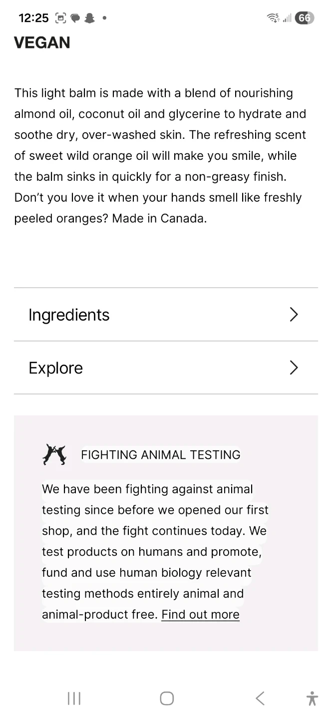 This hand balm offers softening citrus hydration with organic aloe and sunny orange. It's made with a blend of almond oil, coconut oil, and glycerine.