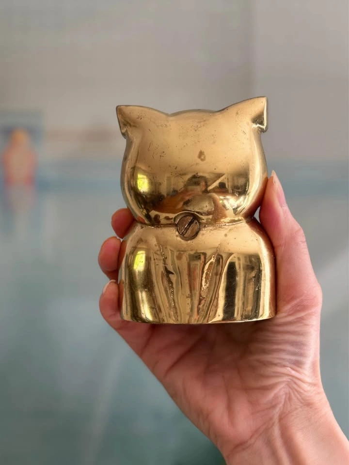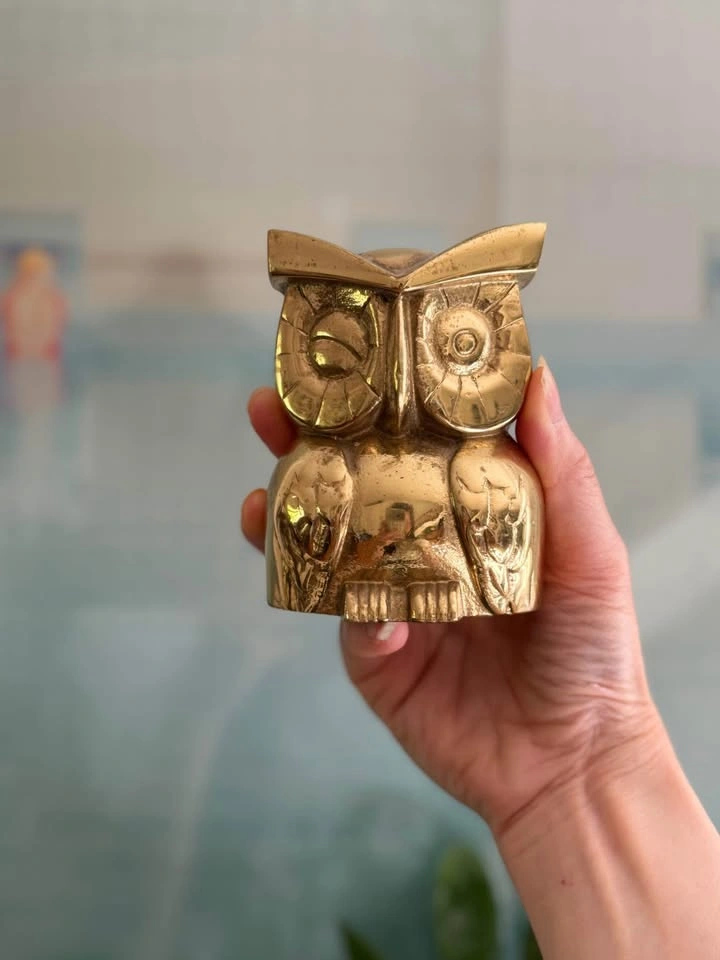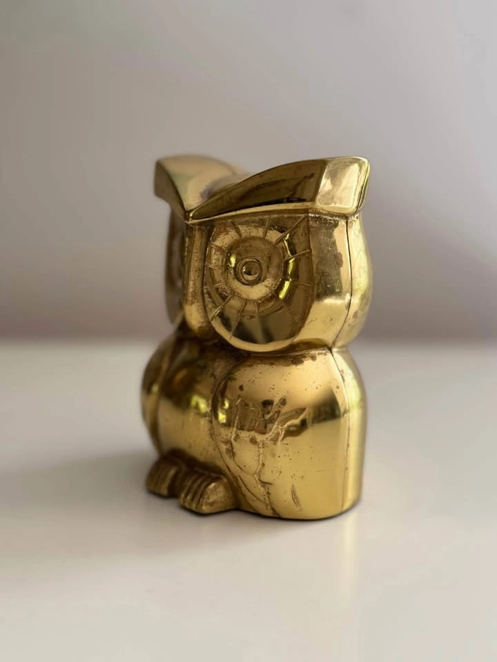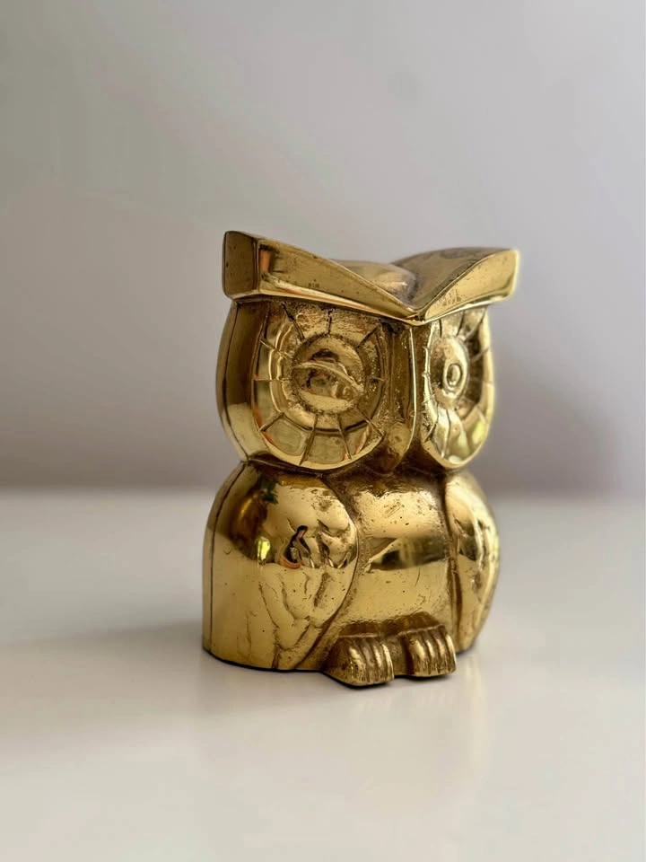 Bring a touch of vintage charm and wisdom to your home decor with this unique mid-century brass owl. Perfect as a decorative paperweight, bookend, or coin bank. Heavy, solid brass with beautiful patina. A great gift for collectors or anyone who loves owls and retro style!