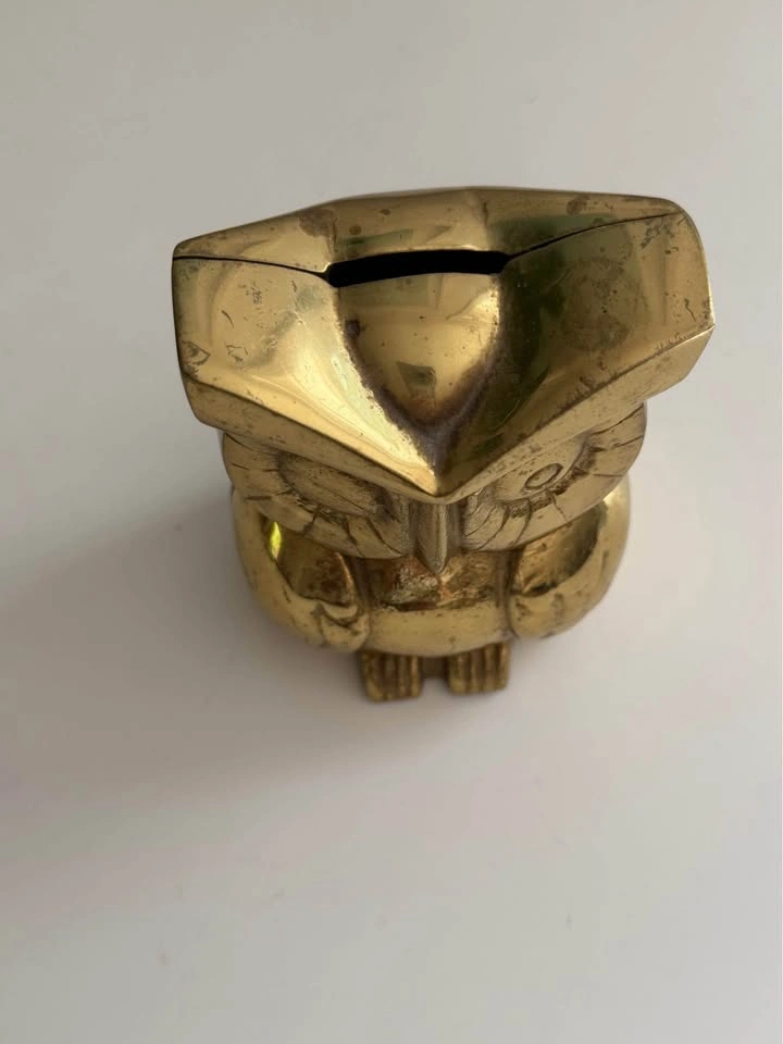 Vintage Brass Owl Coin Bank / Piggy Bank