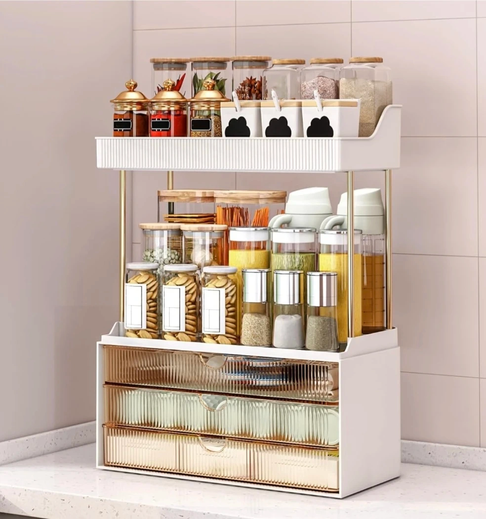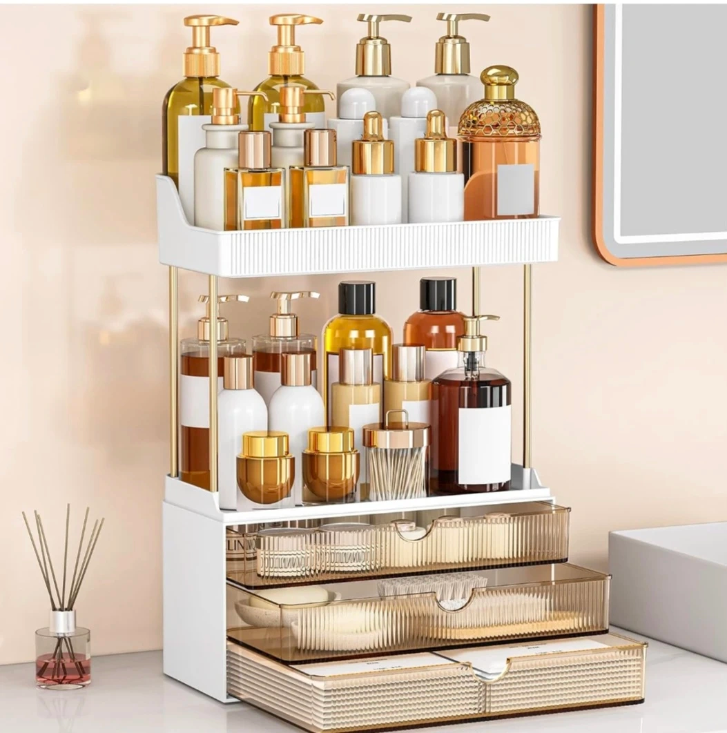 3 Drawers, 2 Tier Bathroom Vanity Organizer Office Kitchen
