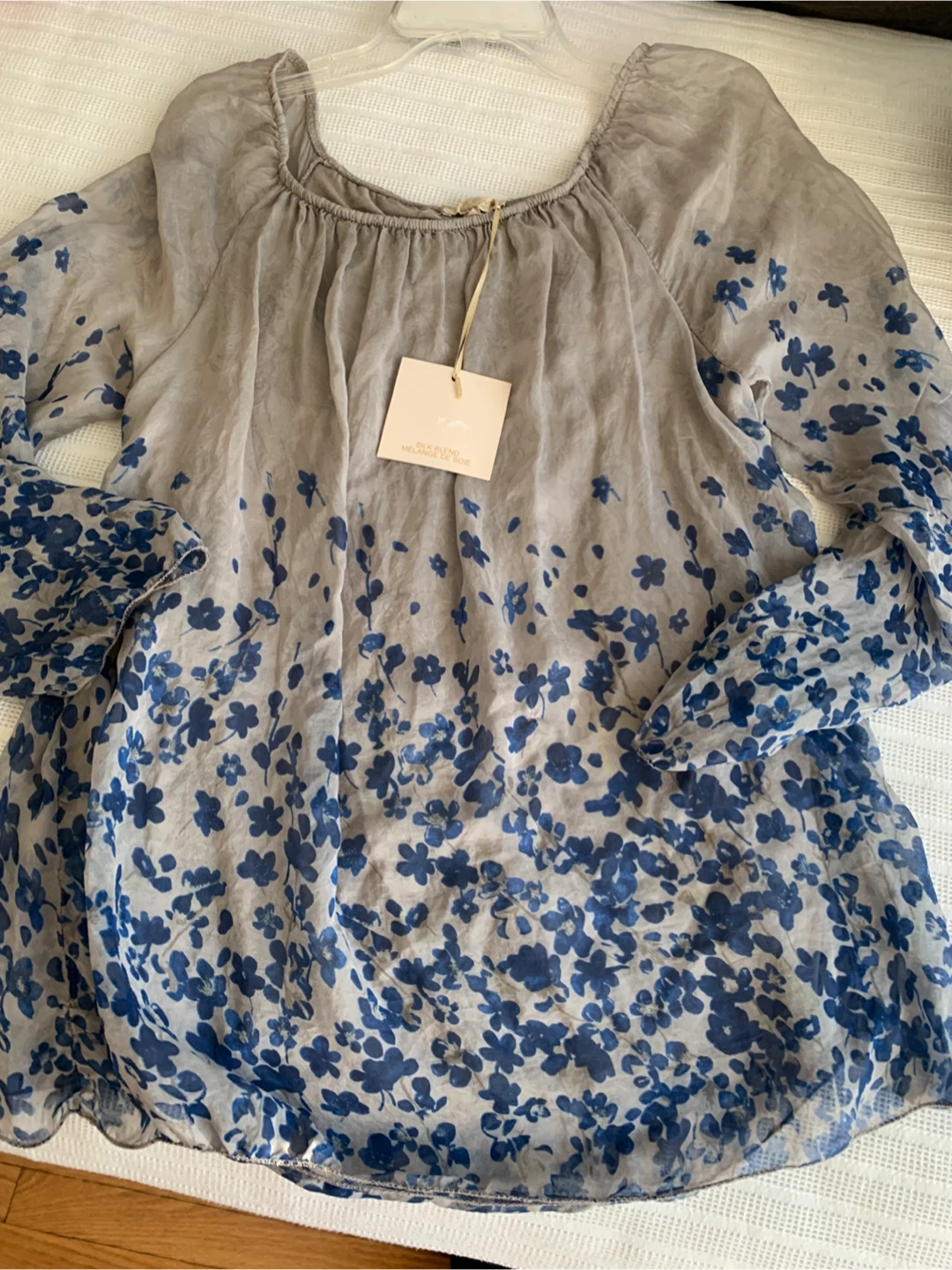 Selling a beautiful Giusy blouse in size M. It's made in Italy and features a lovely floral pattern. The outer shell is 100% silk, while the lining is a blend of viscose and elastane. It's in great condition and ready for a new home!