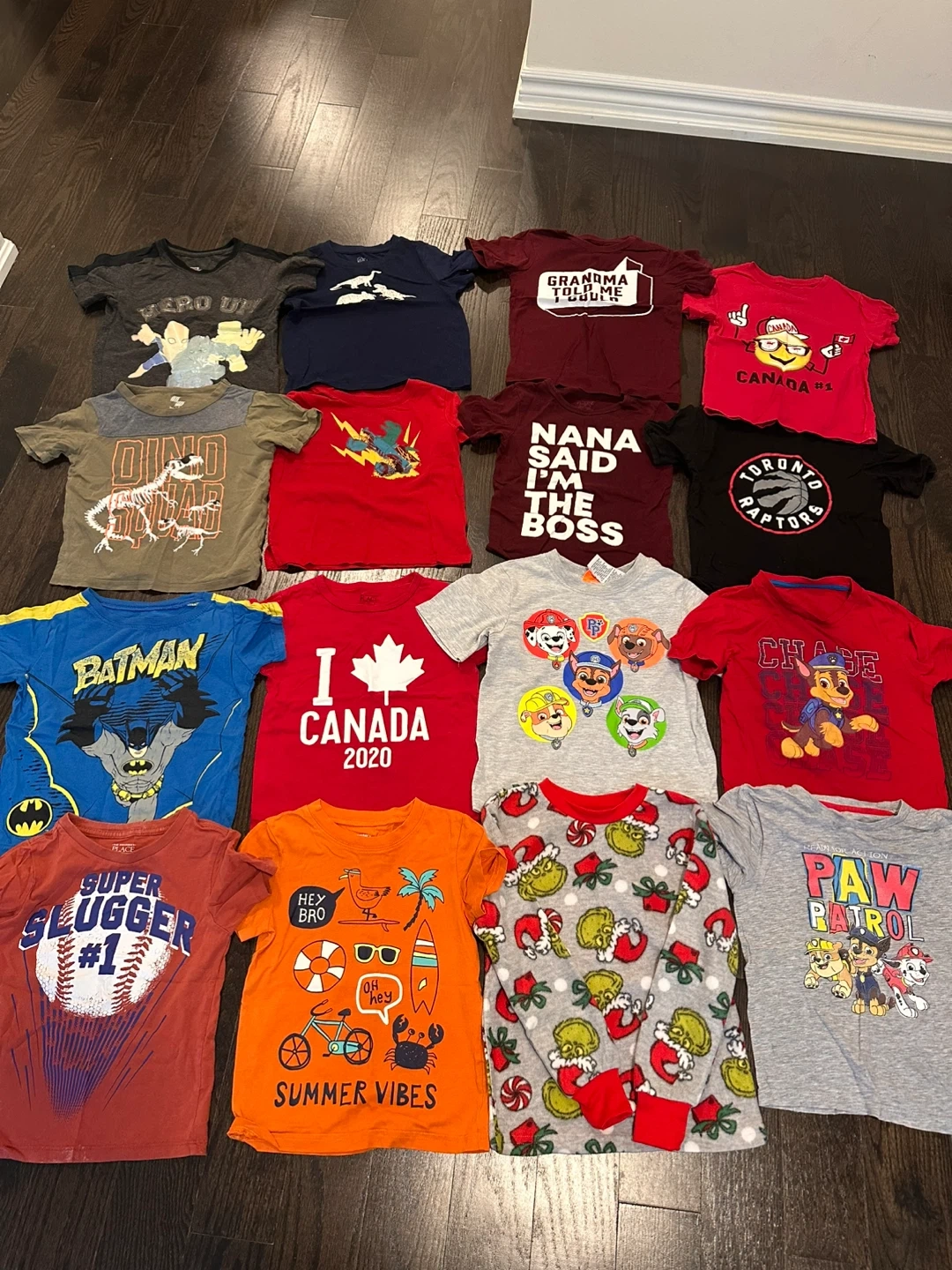 Selling a collection of boys 3T graphic t-shirts! There's a variety of fun designs, including Batman, Paw Patrol, and Canada-themed shirts. Perfect for your little one's wardrobe!