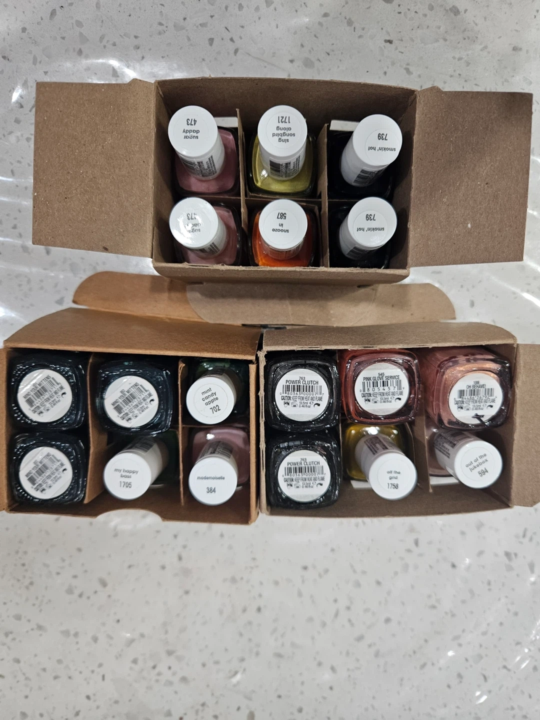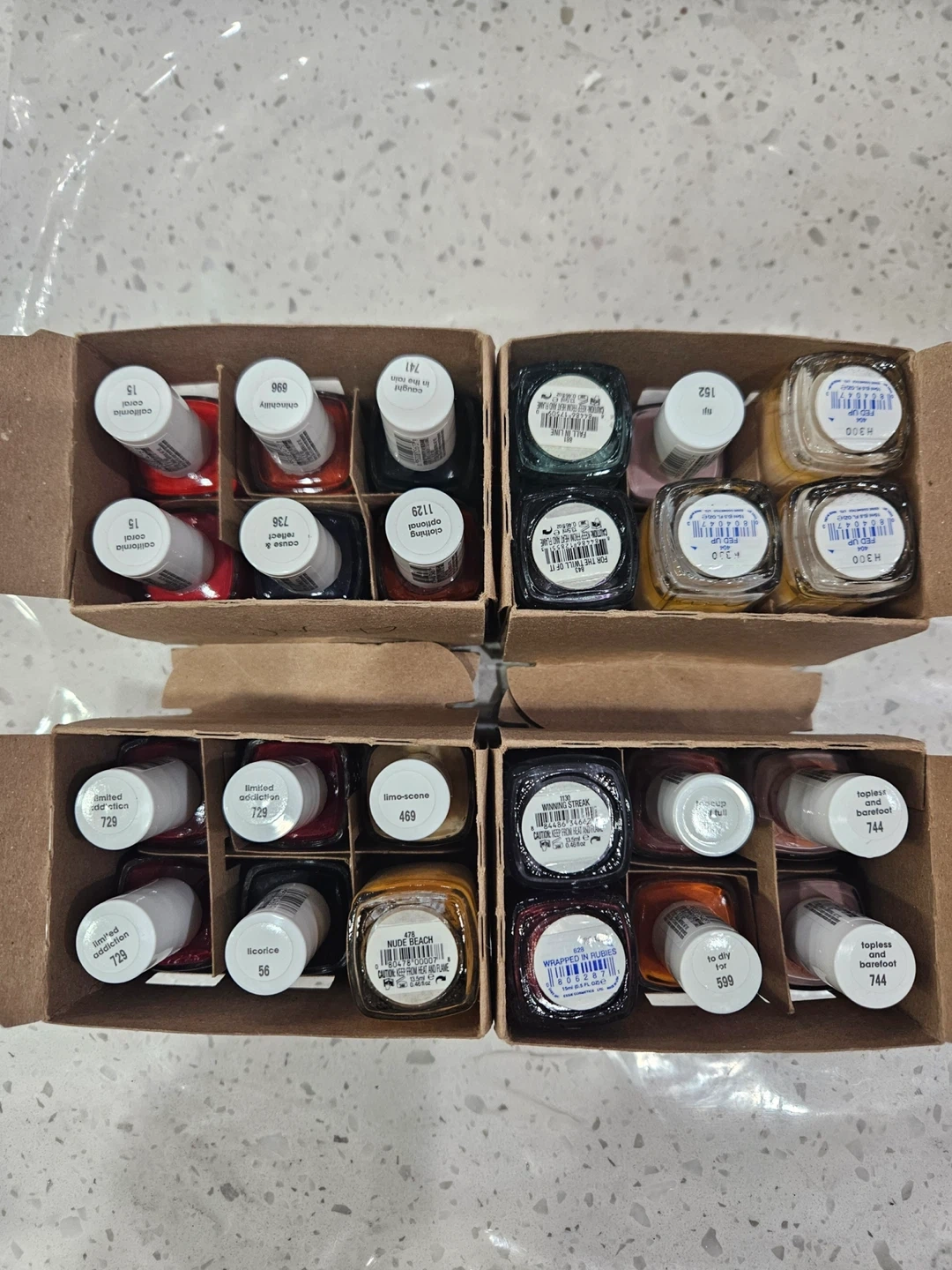 Selling a variety of nail polishes! They come in assorted colors and are in great new condition. Perfect for anyone who loves doing their nails at home or for professional use