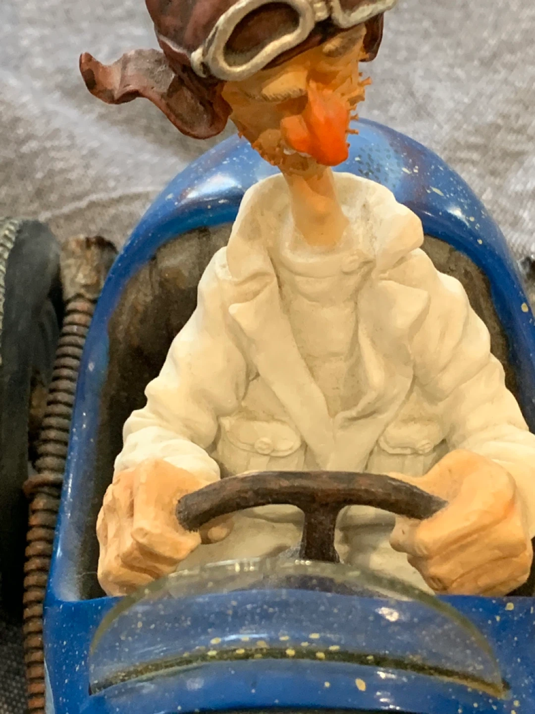 Bring humor, motion, and collectible artistry to your display with this stunning Guillermo Forchino sculpture, “Le Tourbillon Bleu” (The Blue Hurricane Racer)