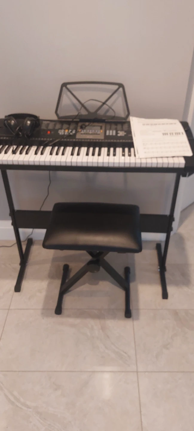 This is a Joymusic JK-61 61-key multifunctional training keyboard. It's a training keyboard with various sounds and rhythms. This would be useful for someone learning to play the keyboard.