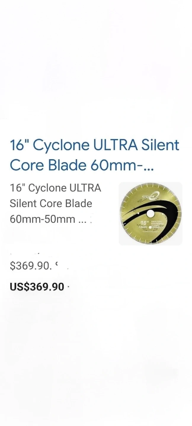 The Cyclone Ultra blade was specifically designed for cutting sintered stone materials like Dekton, Neolith, Techlam, and others. It boasts a noise-reducing silent core and a top-notch diamond bond, allowing it to effortlessly slice through tough materials while minimizing chipping. Additionally, the Ultra's bond reduces the strain on the machine and requires less frequent dressing. The Cyclone Ultra blade is an excellent option for clean and efficient cuts on extra hard materials.
