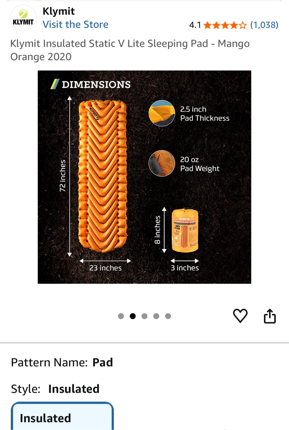 This Klymit sleeping pad is designed for lightweight adventures. It offers 2.5 inches of thickness and weighs 20 oz. The pad rolls up to 3 inches by 8 inches for easy packing.