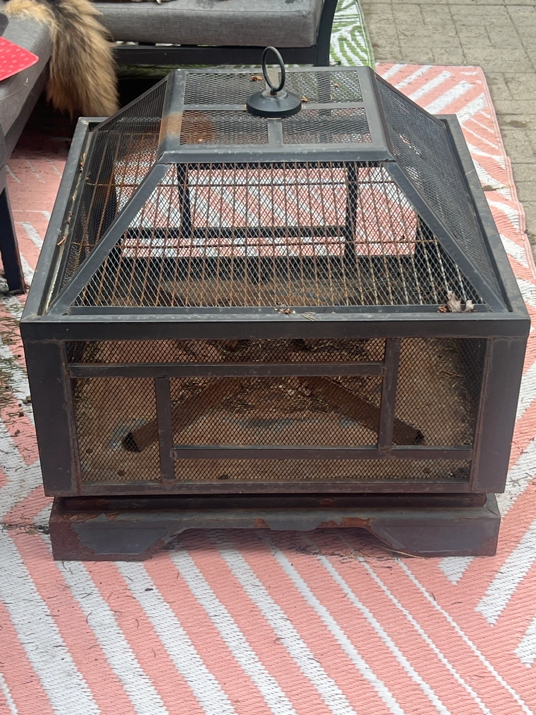 Buy & SellOutdoor Fire Pit with CoverOutdoor Fire Pit with Cover$50Black metal fire pit. Square shape with a metal mesh top. Has some rust due to being outside during the winter uncovered.WHERE TO MEETCheck LocationView MapSELLERJessyW Hill231 review0 chats·0 favorites·54 viewsSEND CHAT TO SELLERHi Jessy! I’m interested in your listing.Hi Jessy! I’m interested in your listing.Get the Karrot app to chatSign In to chat