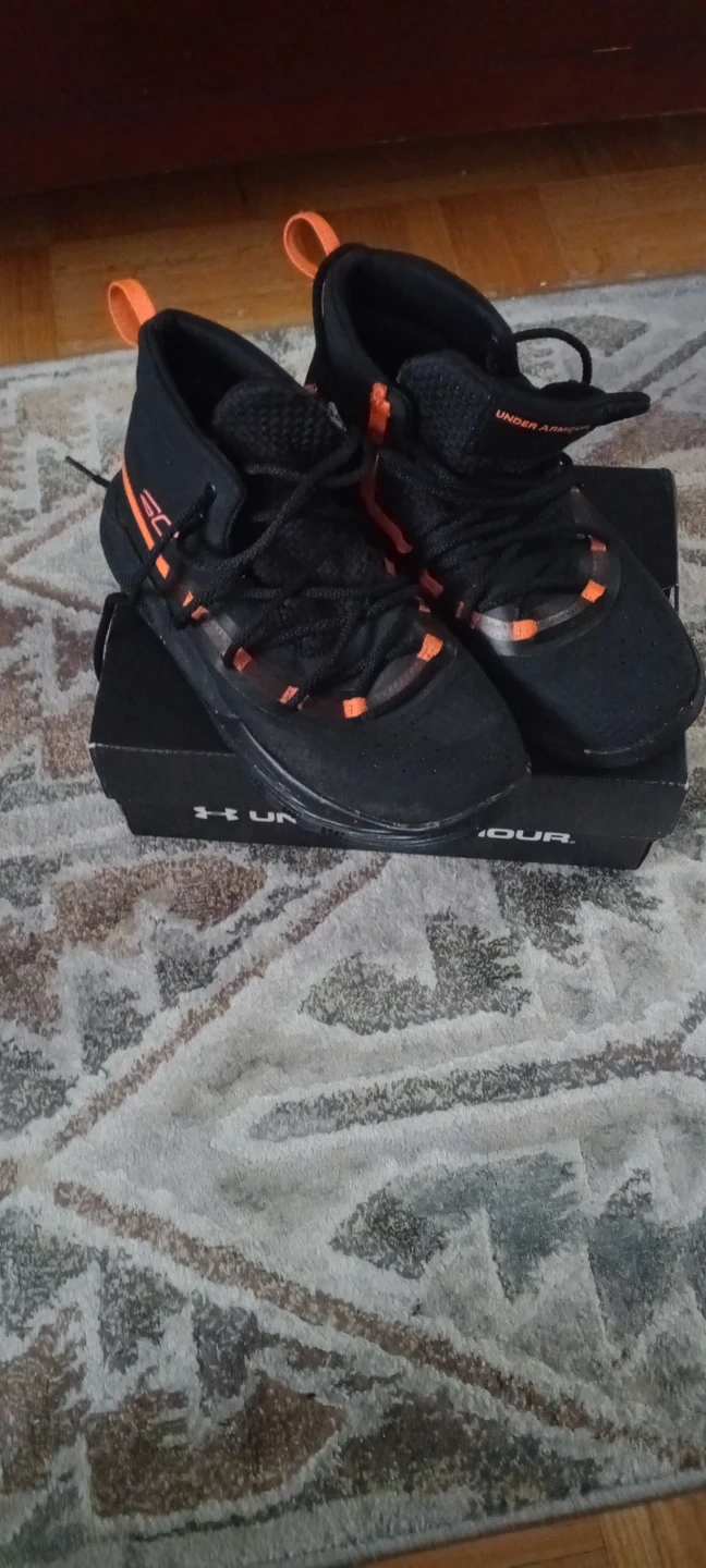 Under Armour Curry basketball shoes in black and orange. US Youth size 2Y. Includes original box.