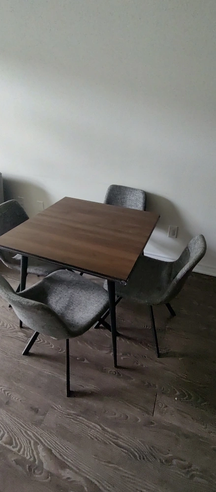 Four chairs and a square table.