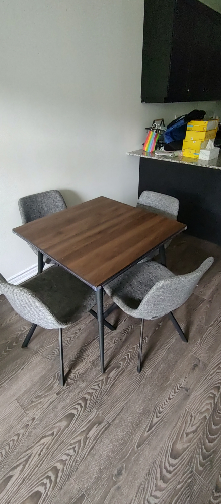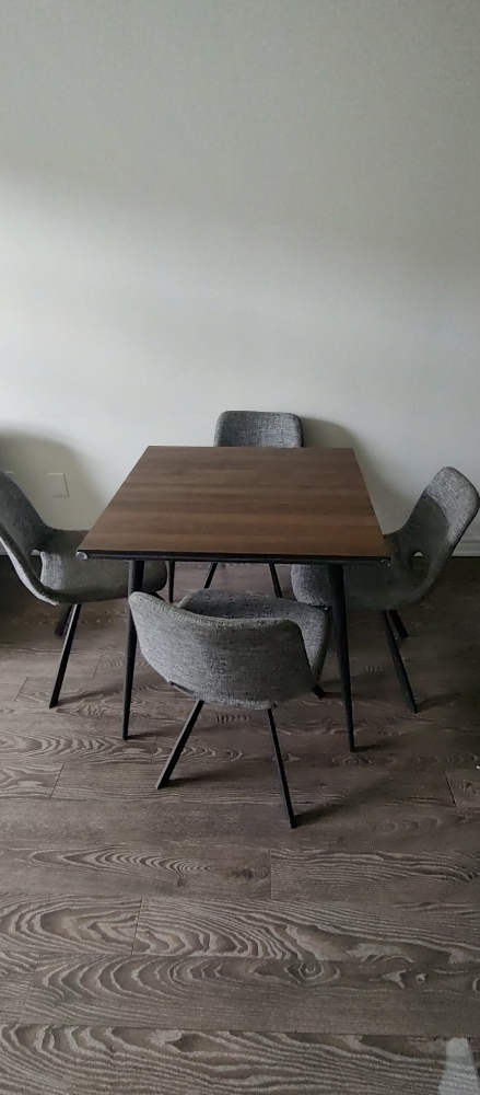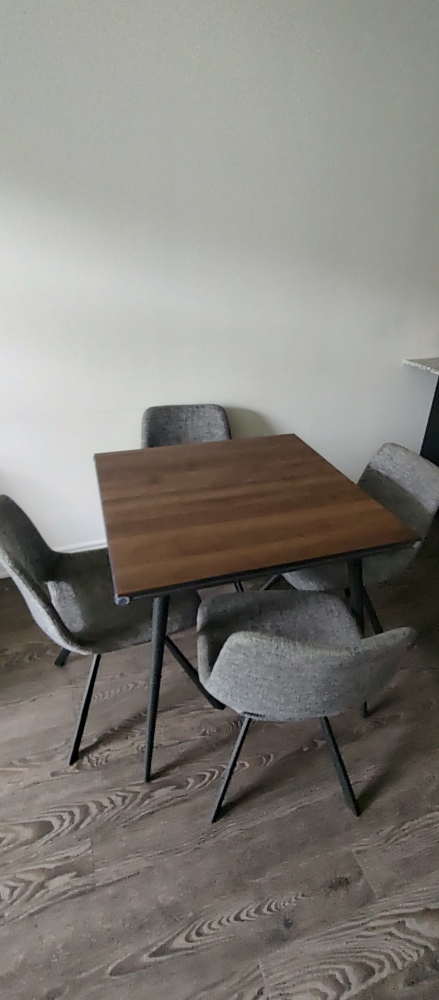 Four chairs and a square table.