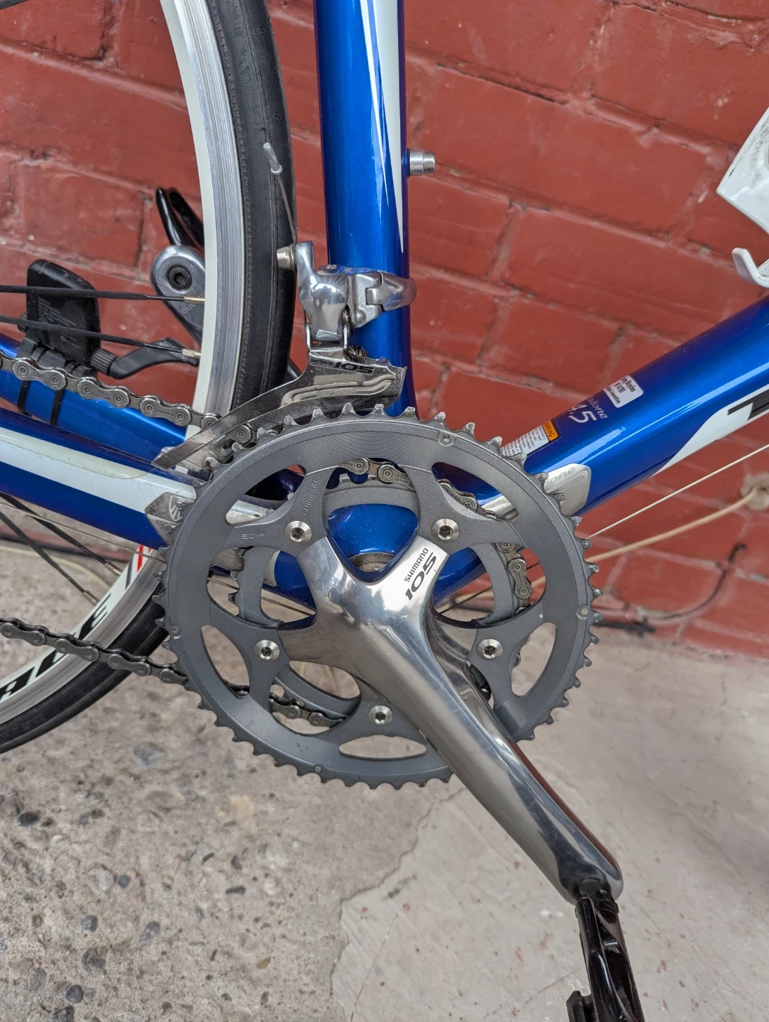 I'm selling a used Trek Madone 4.5 Compact road bike, featuring a 60cm frame and Shimano 105 components for reliable performance. This bike is perfect for enthusiasts looking for a blend of comfort and speed on their rides. It's in good condition and ready to hit the road!