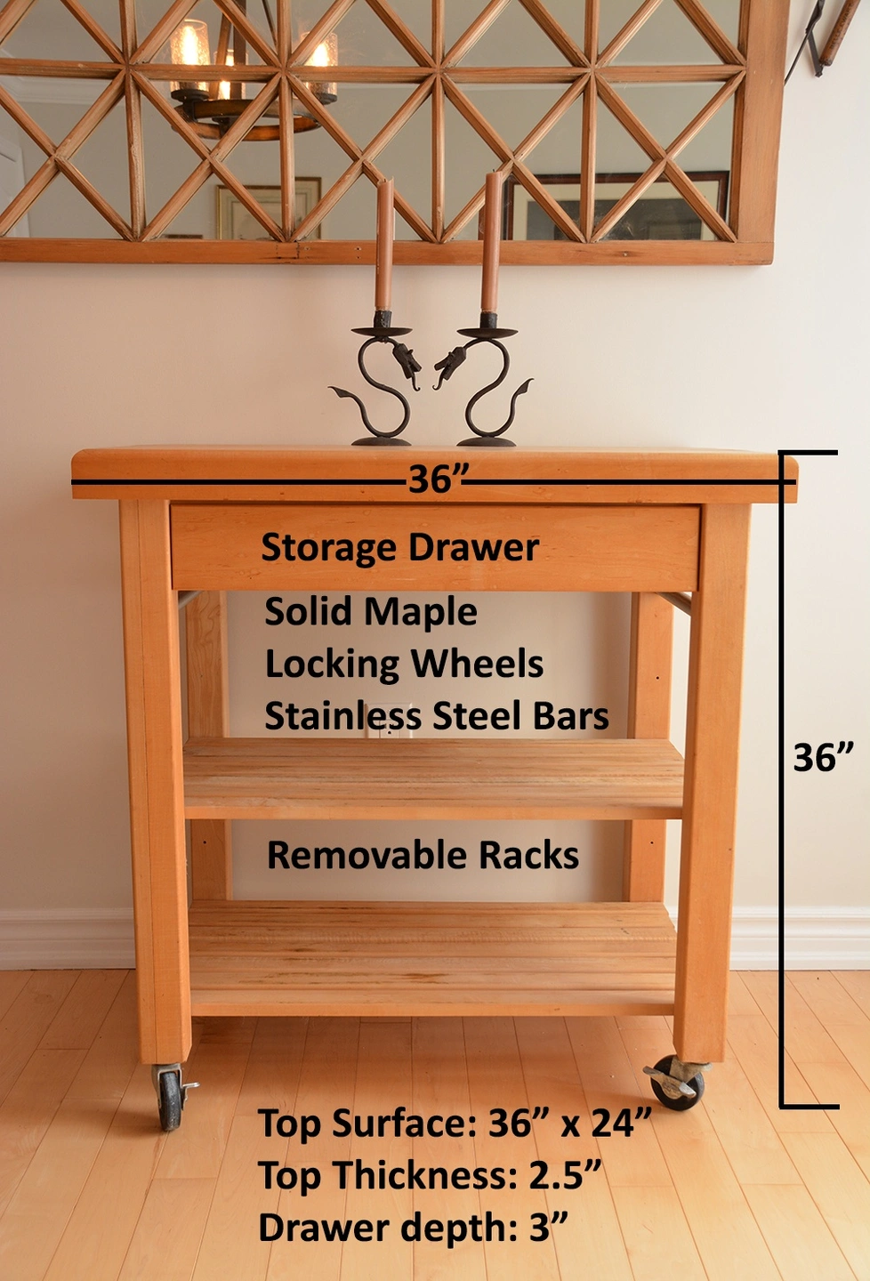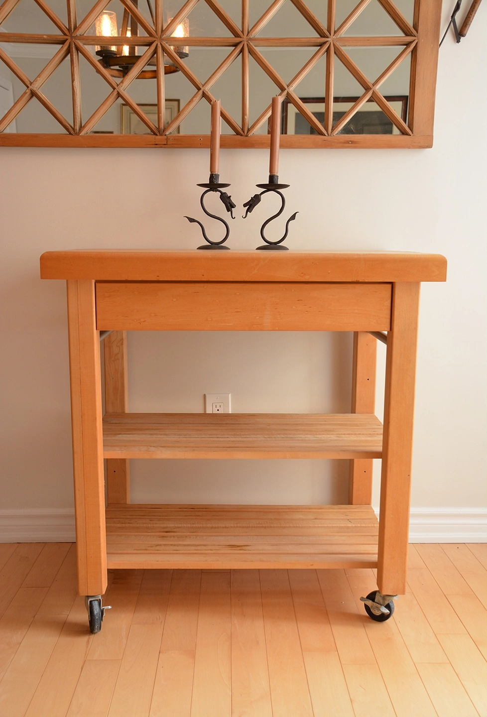 Solid Maple Butcher's Block Table - Locking Wheels