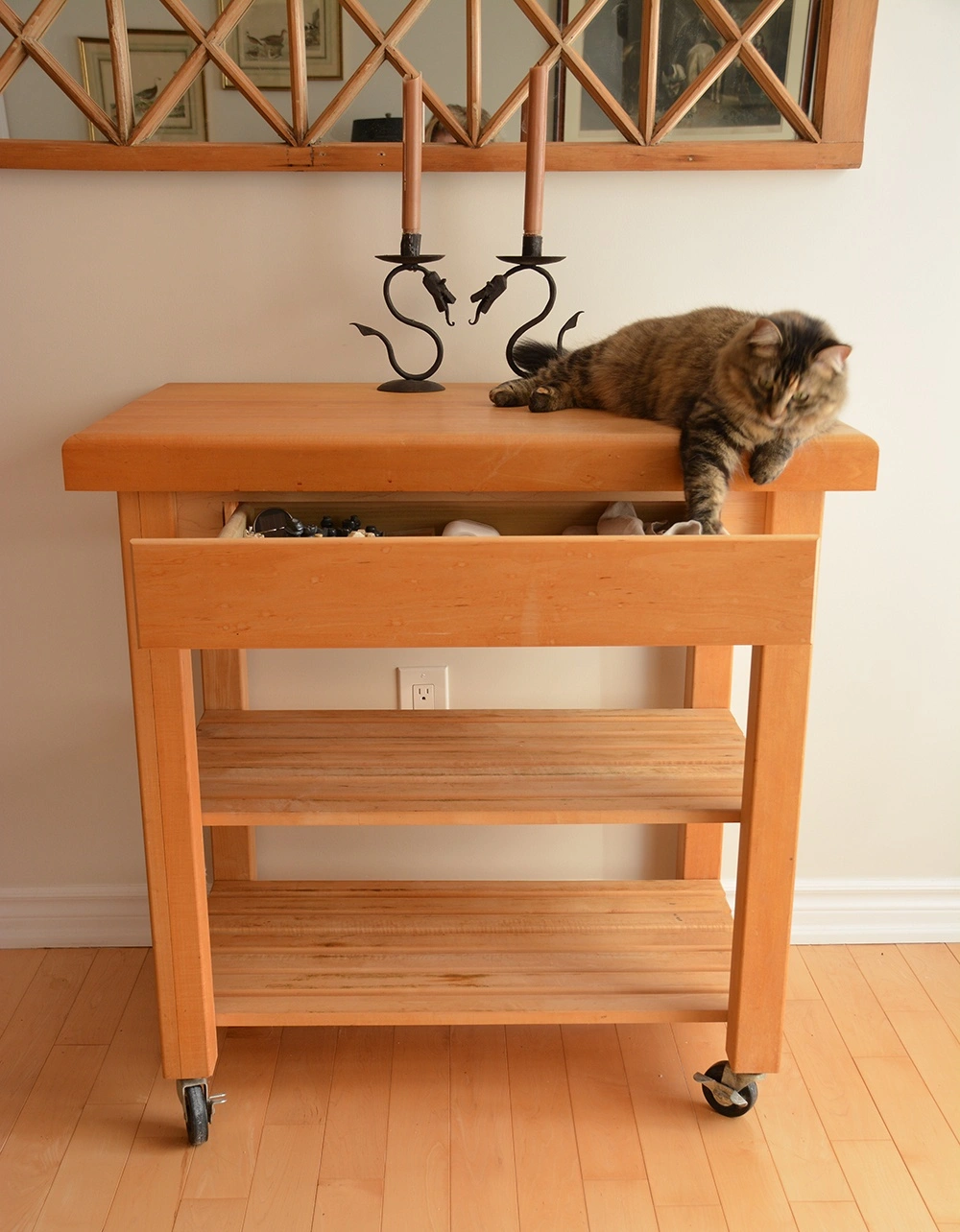 Solid Maple Butcher's Block Table - Locking Wheels