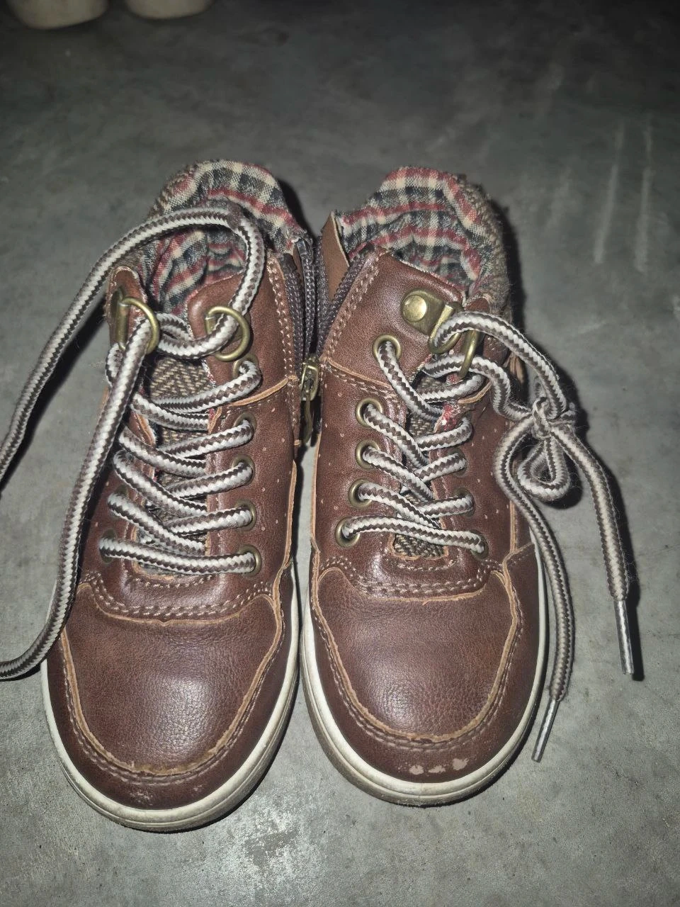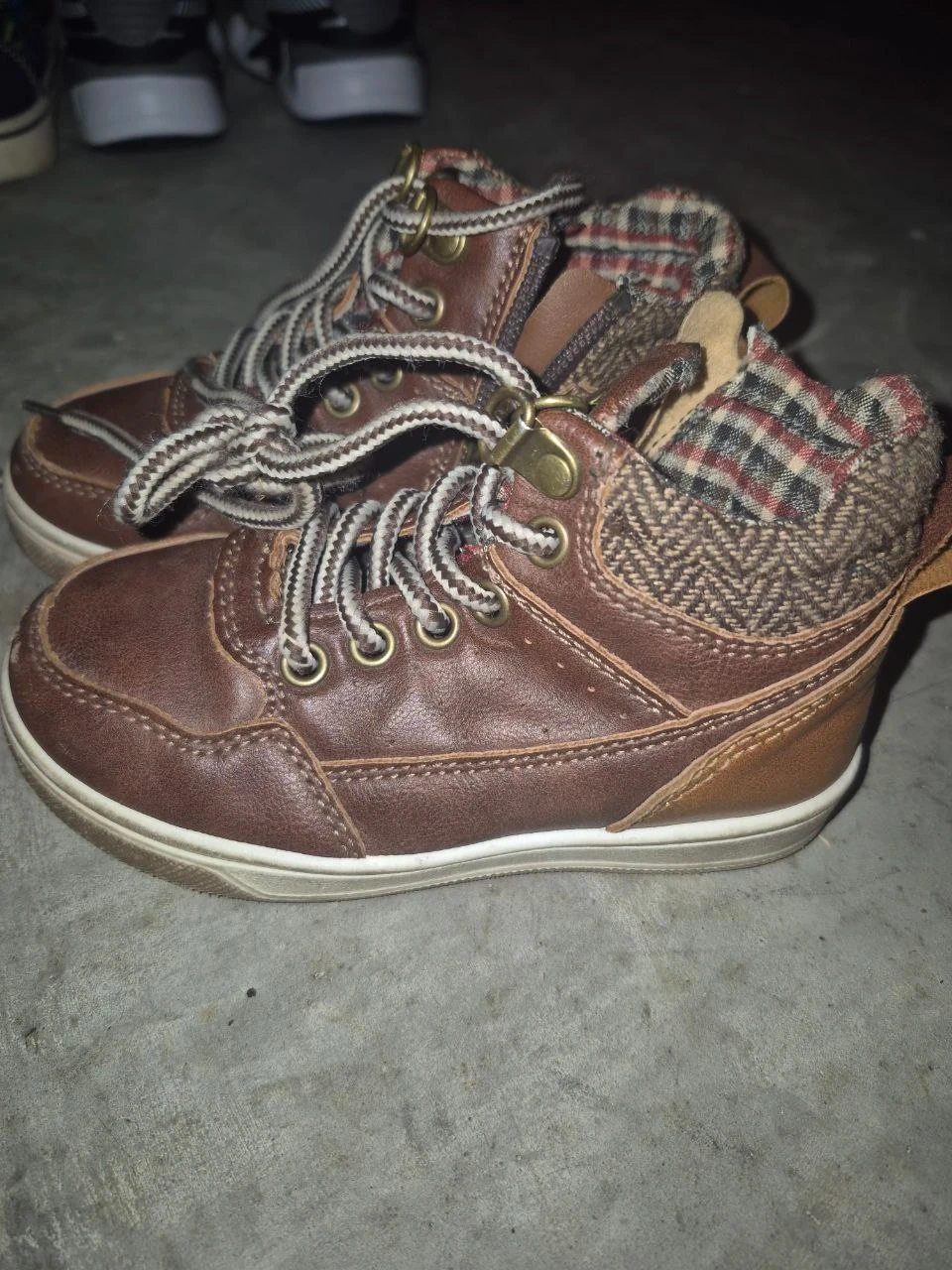 These Tommy Bahama boots are a stylish brown colour with plaid lining. They're a size 7 and feature a convenient lace-up and side zipper closure. Pick up only!