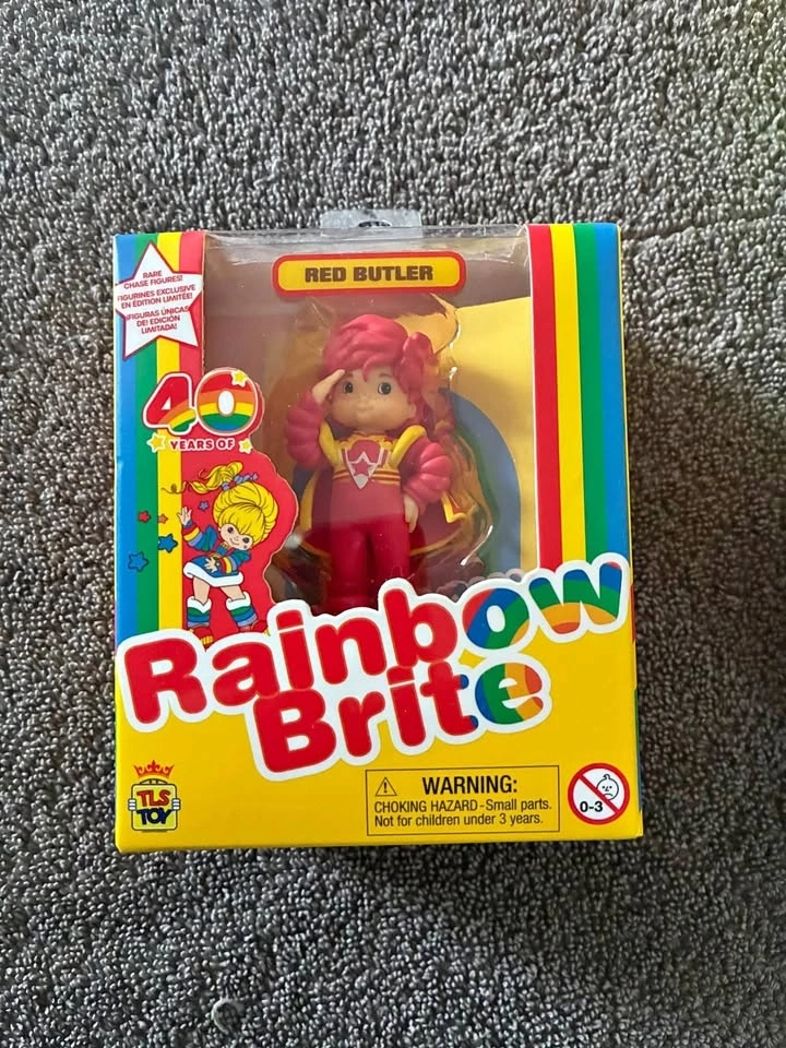 This is a The Loyal Subjects 40th Anniversary Rainbow Brite Red Butler 3-inch collectible figure. The packaging indicates it is a "rare chase figure". The figure is approximately 2.5 to 3 inches tall.
