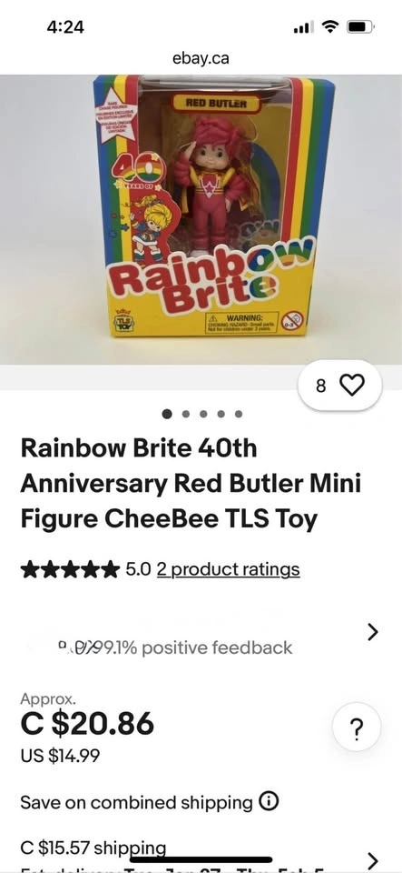 This is a The Loyal Subjects 40th Anniversary Rainbow Brite Red Butler 3-inch collectible figure. The packaging indicates it is a "rare chase figure". The figure is approximately 2.5 to 3 inches tall.