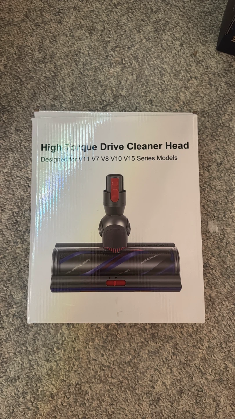 This is a High Torque Drive Cleaner Head designed for Dyson V11, V7, V8, V10, and V15 series models. It includes the main cleaner head, a small cleaning brush, and a small tool for hair removal. Some assembly may be required upon receipt.