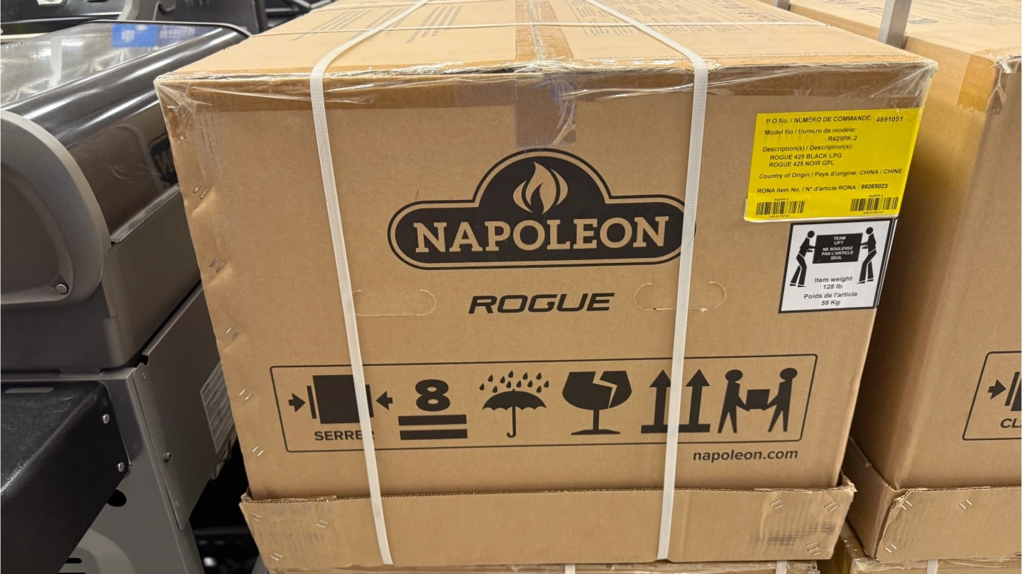 Napoleon Rogue 425 propane gas grill. Features three main burners and a main cooking area of 23.75" x 18". It has 42,000 BTU main BTU. This grill is black.