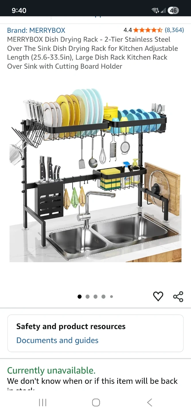 This MERRYBOX dish drying rack is made of stainless steel. It's designed to go over the sink and includes a cutting board holder. It's a large rack with adjustable length for kitchen use.