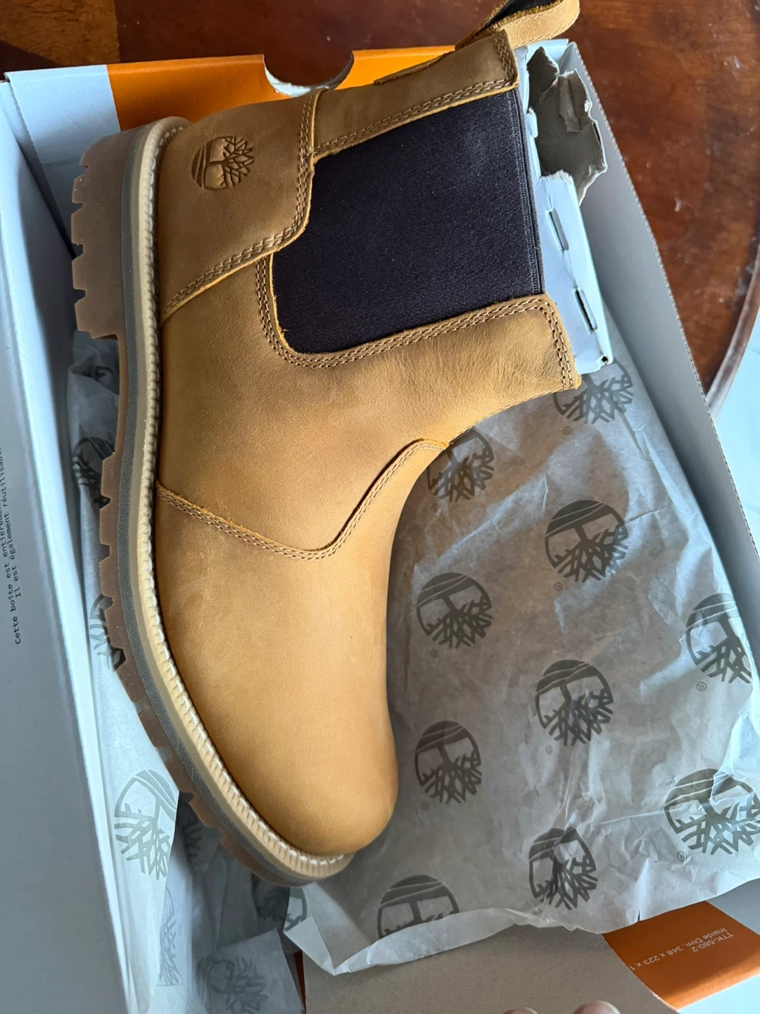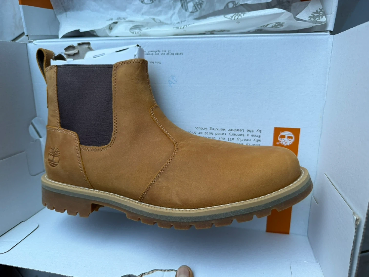 These are Timberland classic Chelsea boots in tan suede. They feature elastic gore side panels for easy on and off. Built with a durable rubber sole for traction.
