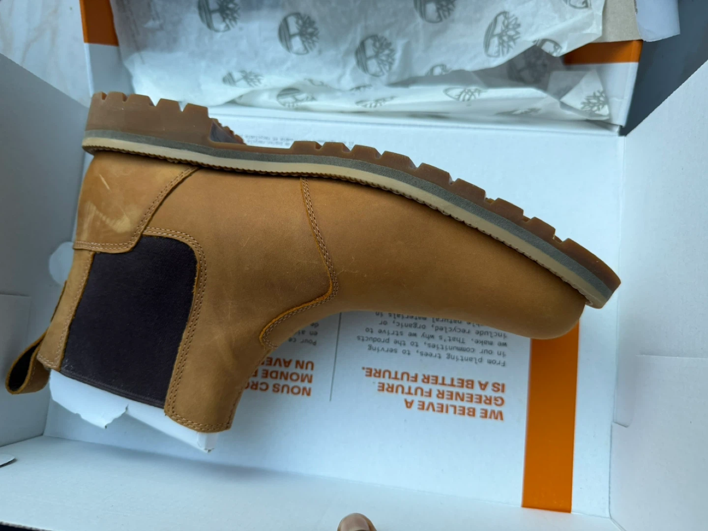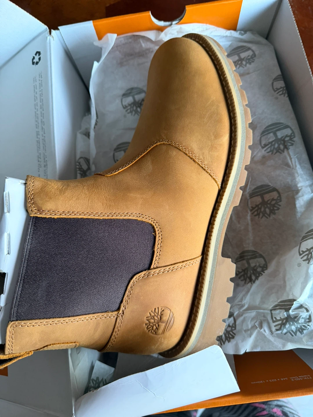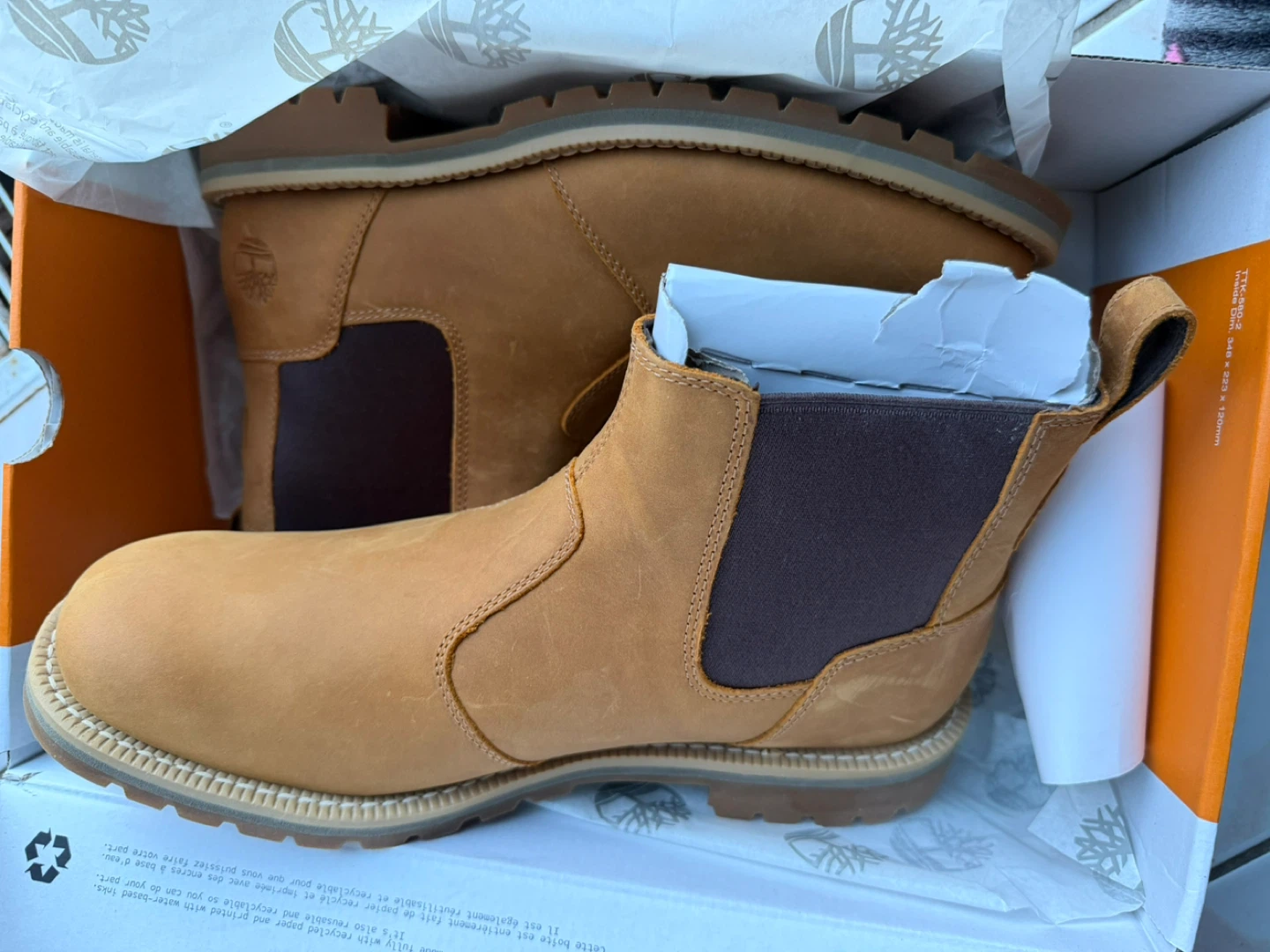 These are Timberland classic Chelsea boots in tan suede. They feature elastic gore side panels for easy on and off. Built with a durable rubber sole for traction.