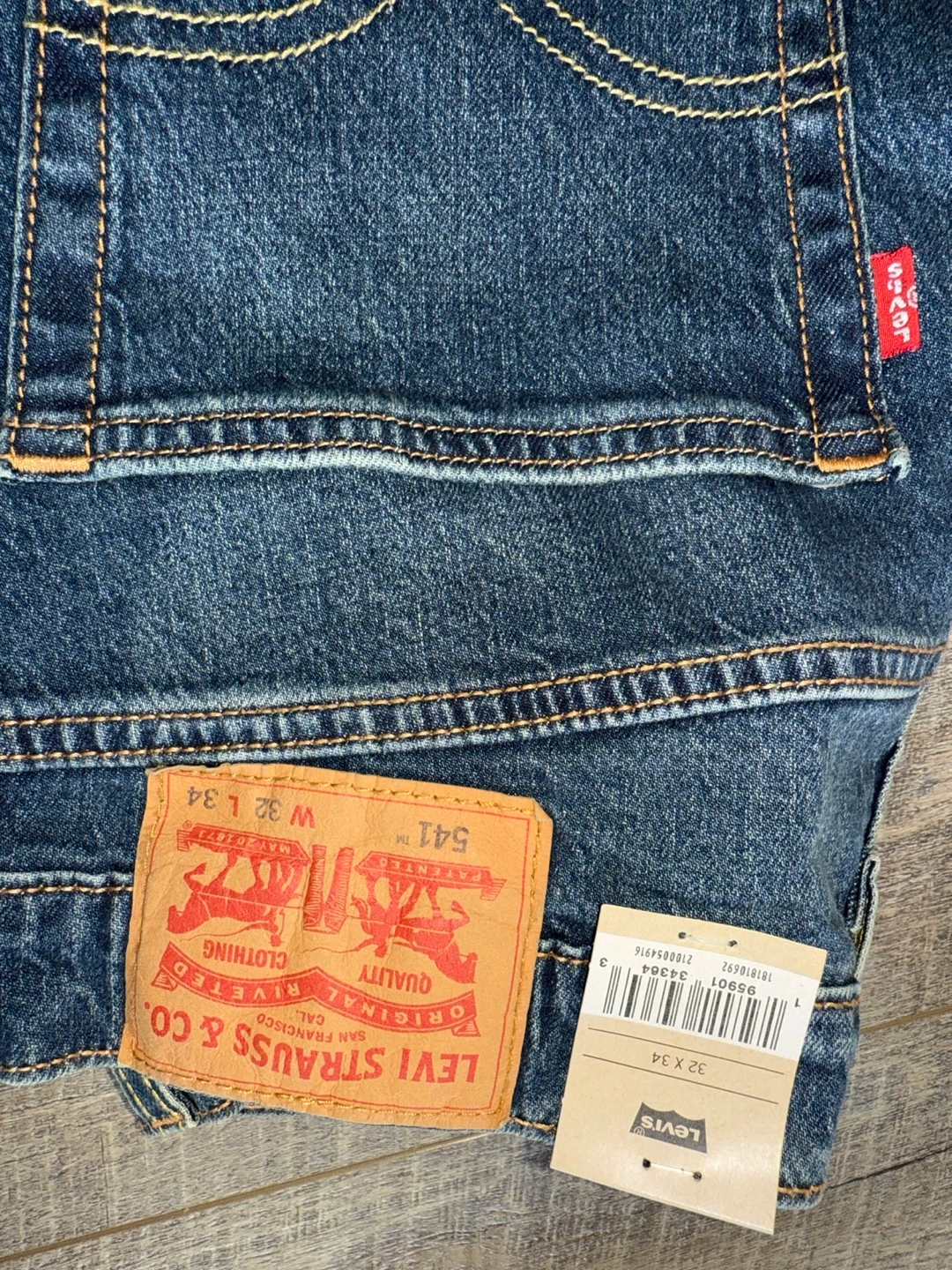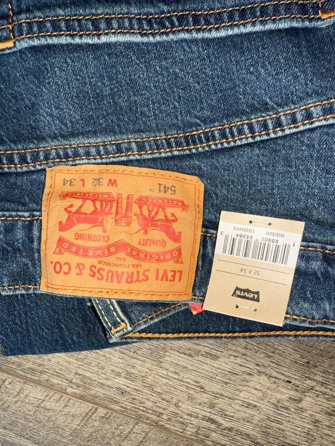 Levi's 541 Athletic Taper jeans in size 32x34! These jeans are designed for comfort and style. They sit at your waist with extra room in the seat and thigh, and feature an eco ease.