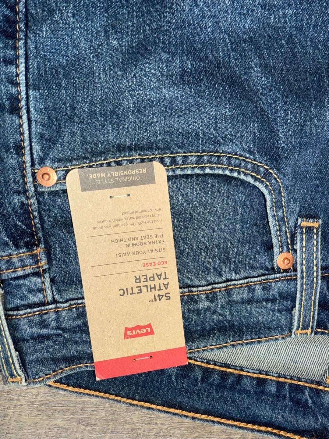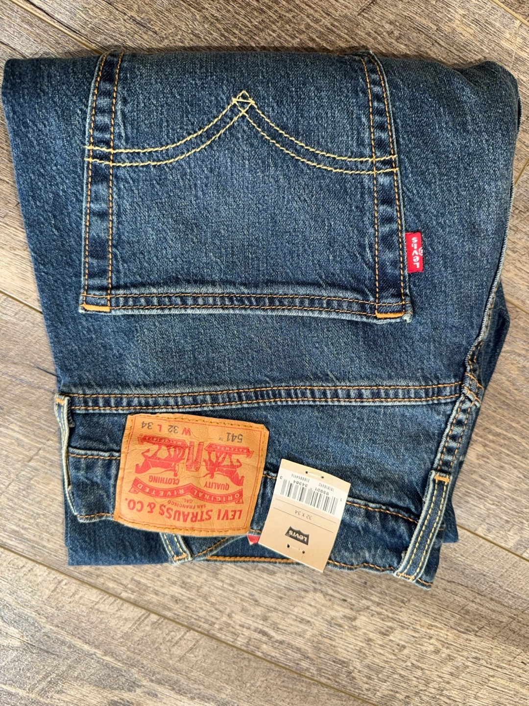 Levi's 541 Athletic Taper jeans in size 32x34! These jeans are designed for comfort and style. They sit at your waist with extra room in the seat and thigh, and feature an eco ease.