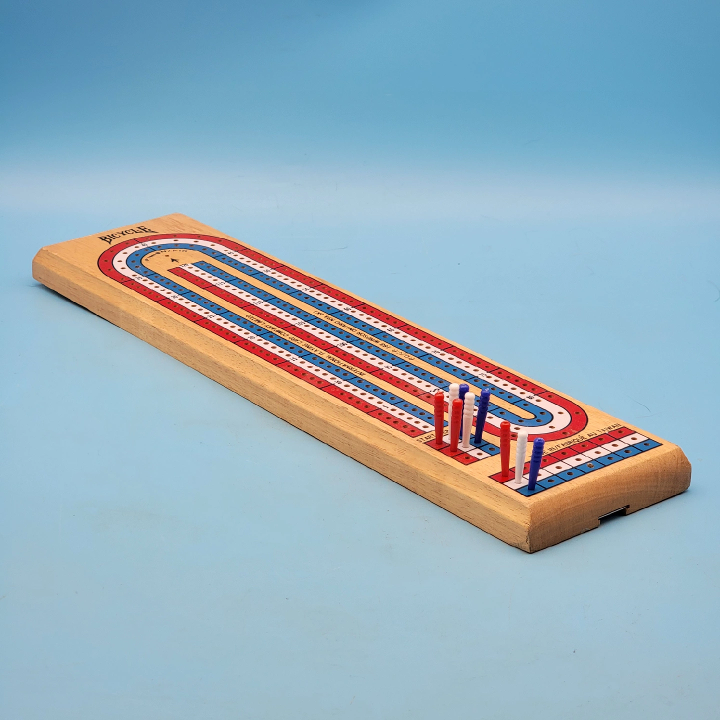 Here's a classic Bicycle cribbage board ready for your next game night!