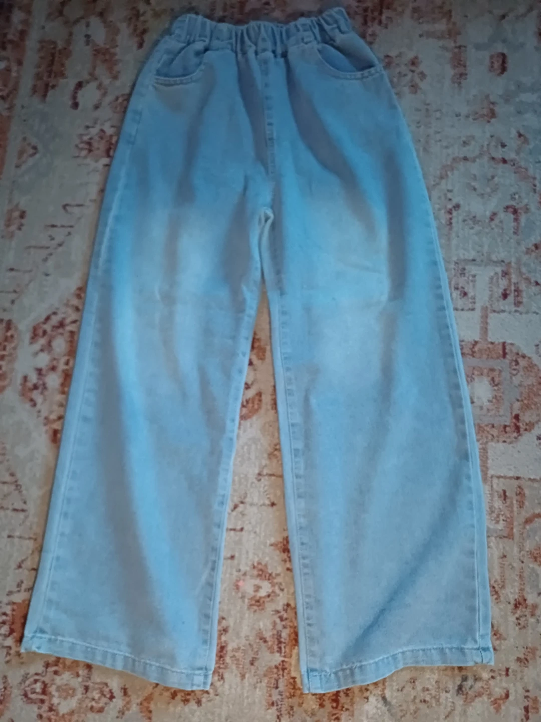 Selling a pair of light wash, wide leg jeans. They're brand new and ready for a new wardrobe! Perfect comfy, casual, stylish look.