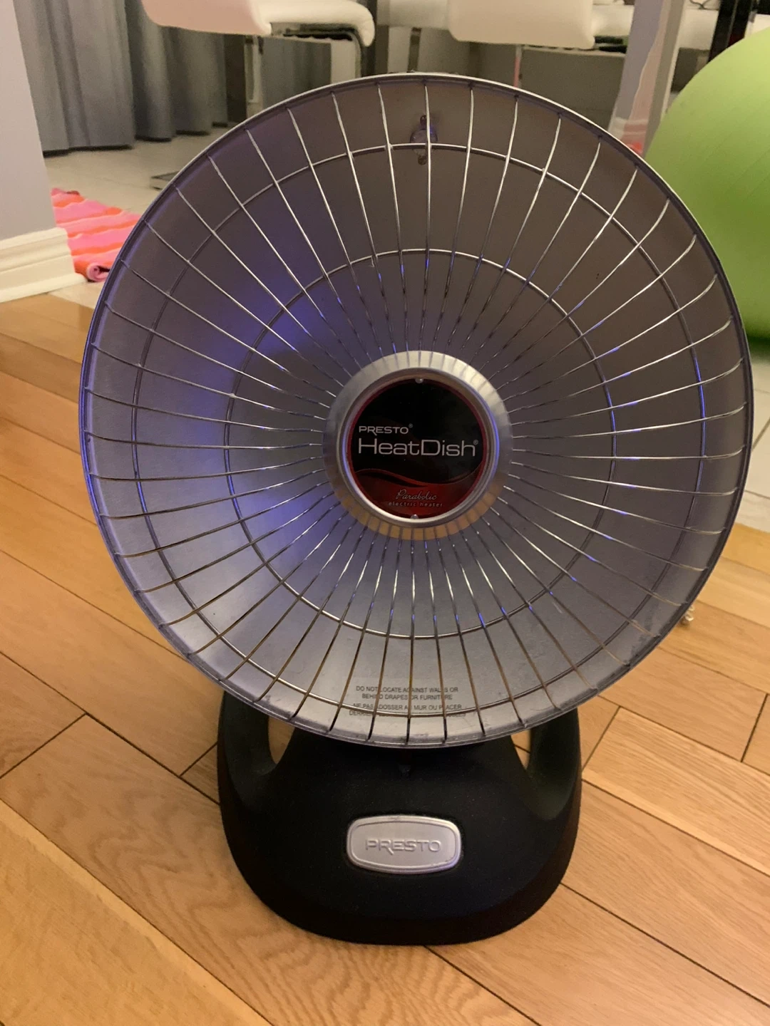 Keep cozy with this Presto HeatDish electric heater! It's perfect for personal warmth and energy-saving heat. The parabolic reflector focuses heat where you need it most. It's a great way to stay warm without heating the whole room
