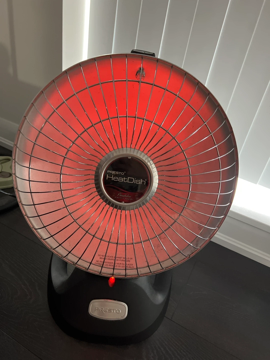 Keep cozy with this Presto HeatDish electric heater! It's perfect for personal warmth and energy-saving heat. The parabolic reflector focuses heat where you need it most. It's a great way to stay warm without heating the whole room