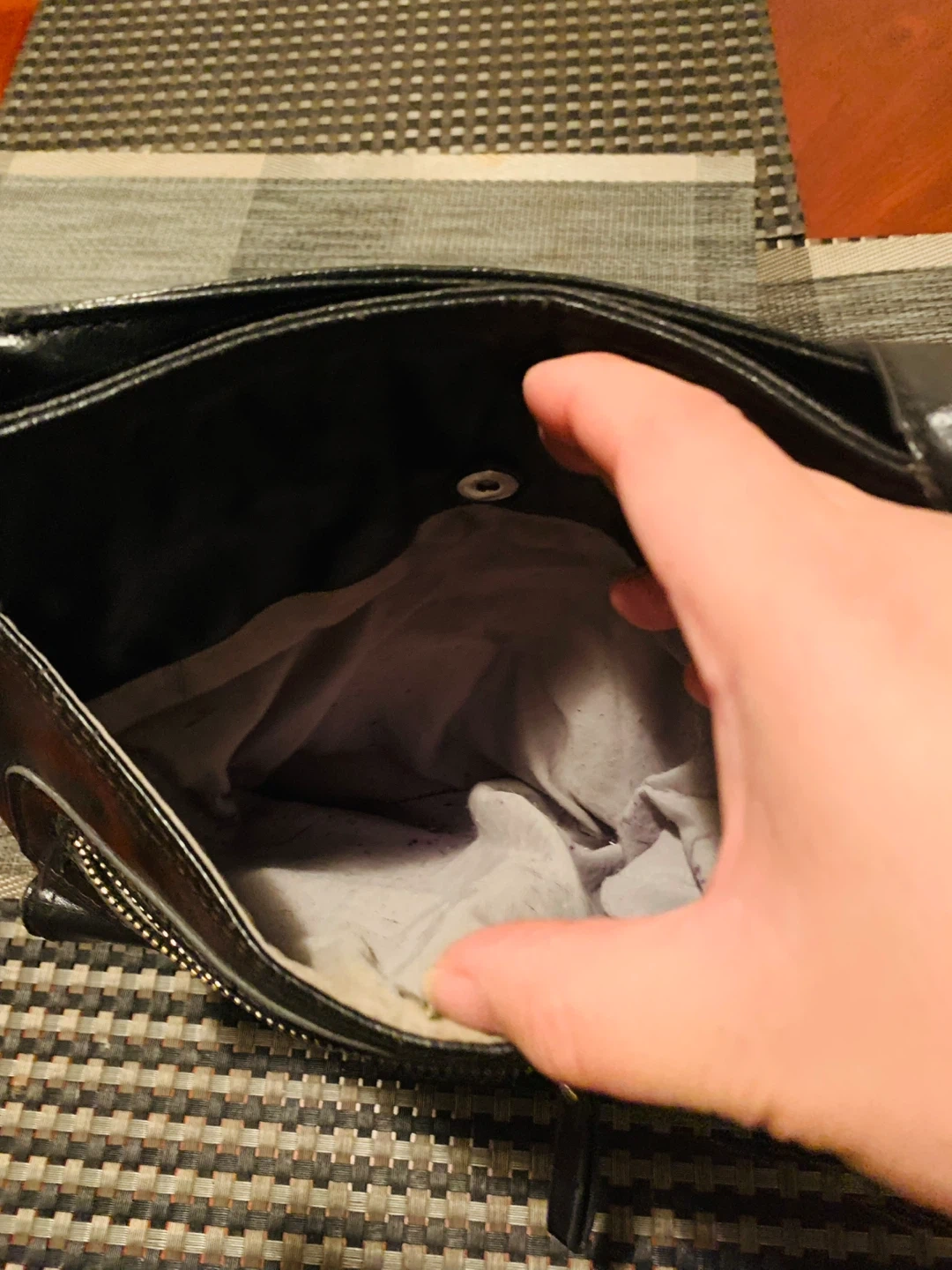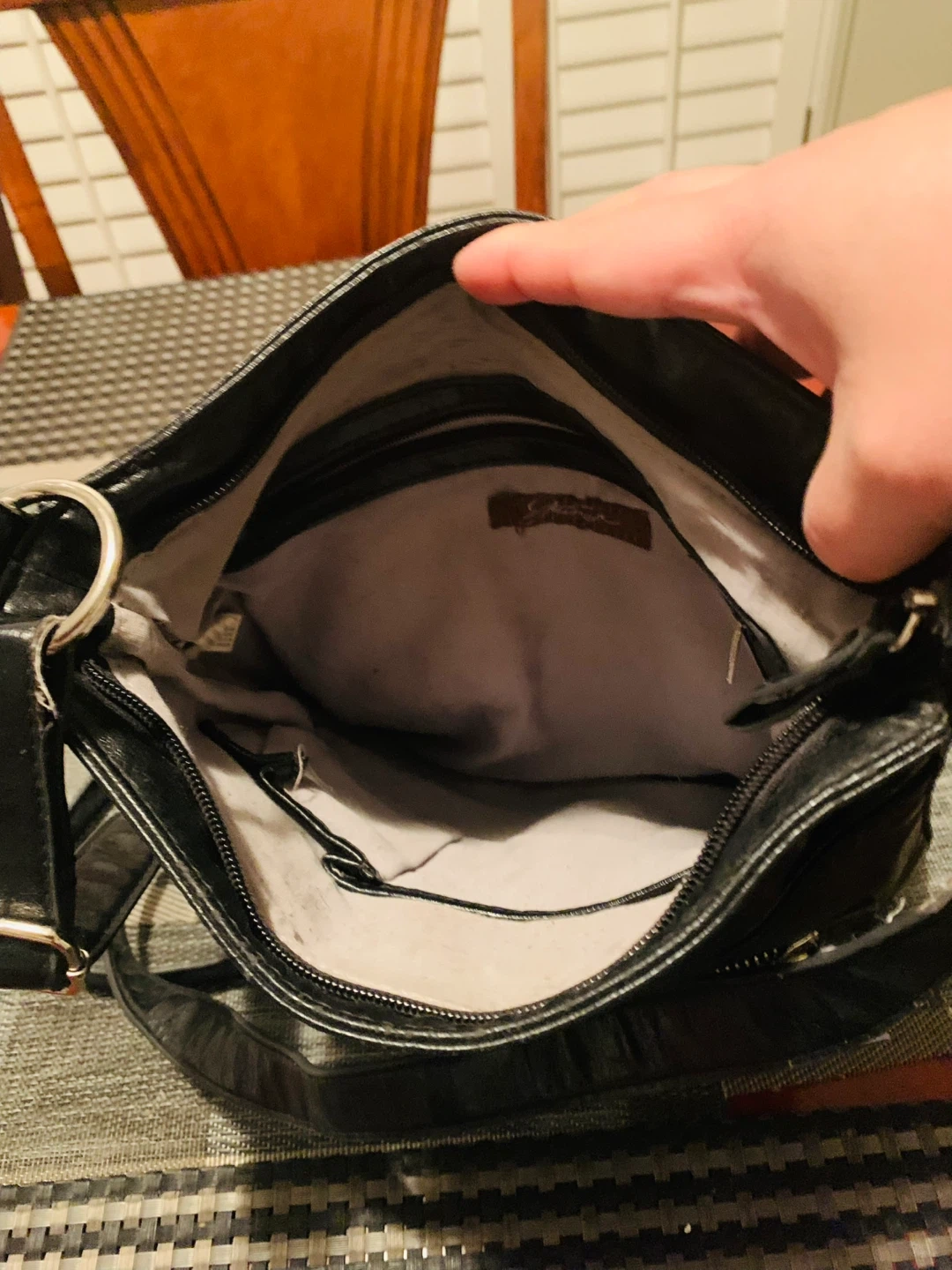 Ladies black purse with many pockets both inside and outside. All zippers work. Still in great condition. Smoke free home. Selling for $5 CAD firm.