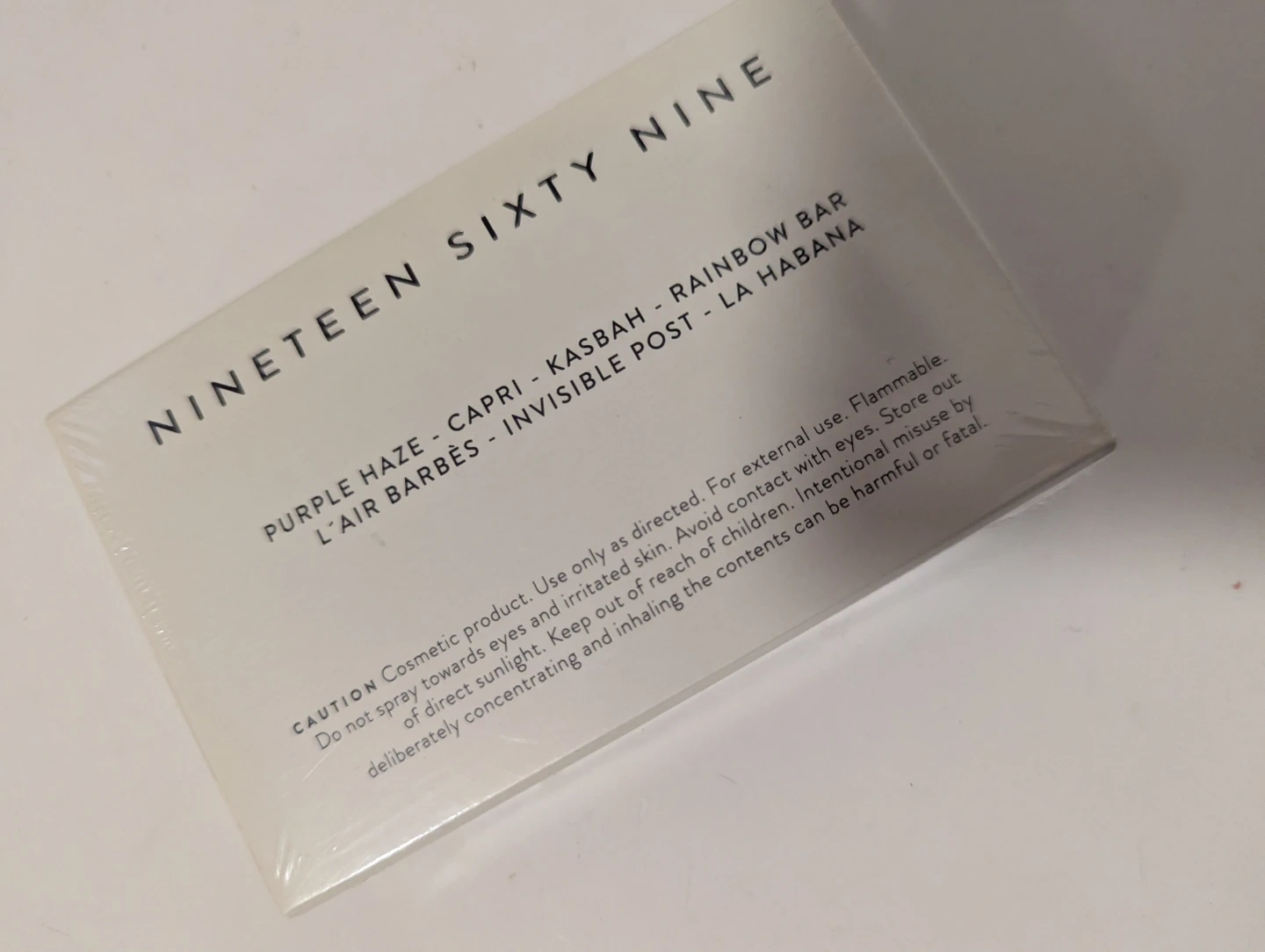 This is the 19-69 Eau de Parfum from The Collection. It features a blend of scents including Purple Haze, Capri, Kasbah, Rainbow Bar, L'Air Barbès, Invisible Post, and La Habana. For external use only.