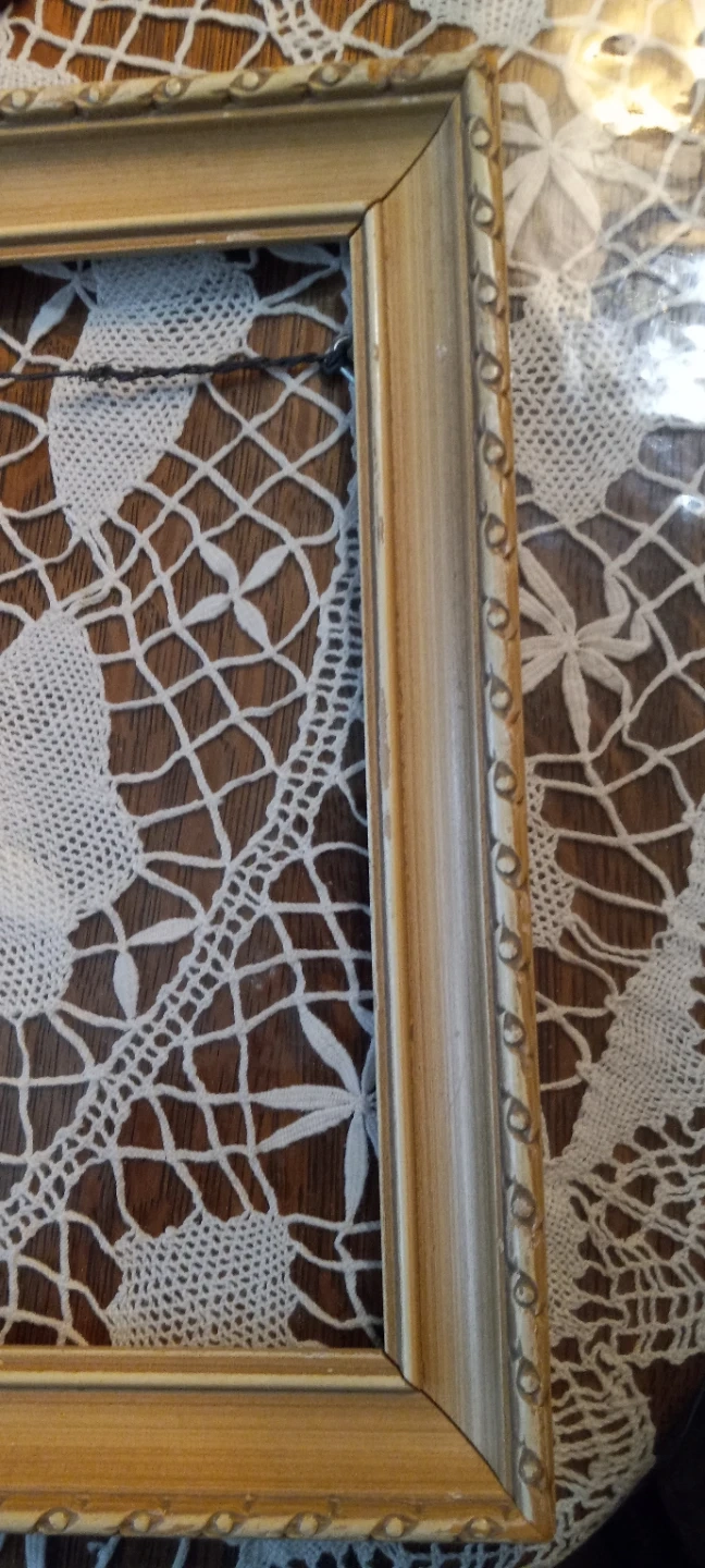 A lovely gold-tone picture frame with decorative trim. It's ready to display your favourite photos or art. This frame has been sitting in my possession for 40+ years, waiting for something to grace it's delicate beauty; kinda like myself.