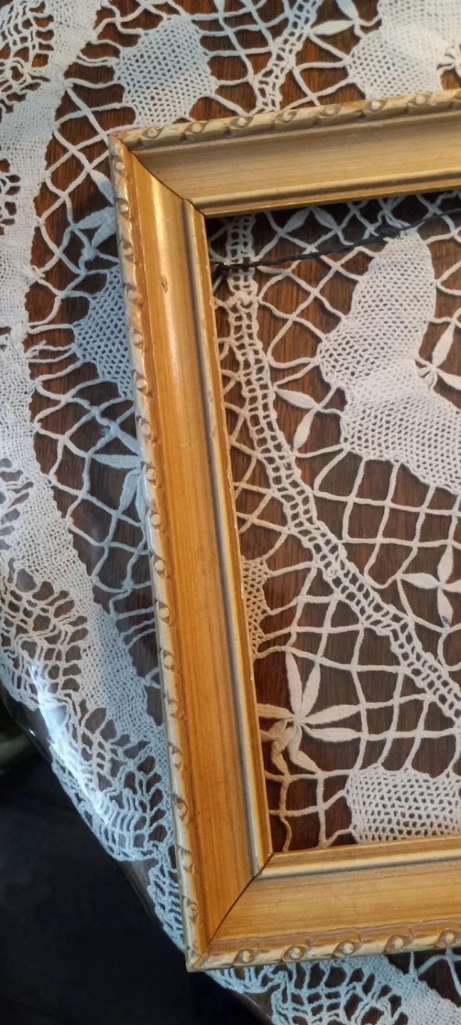 A lovely gold-tone picture frame with decorative trim. It's ready to display your favourite photos or art. This frame has been sitting in my possession for 40+ years, waiting for something to grace it's delicate beauty; kinda like myself.