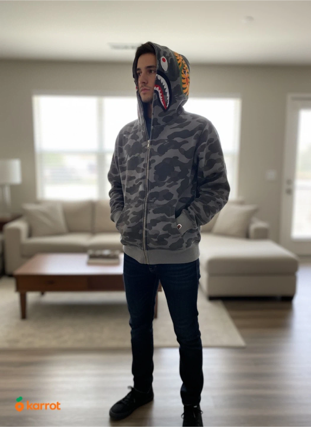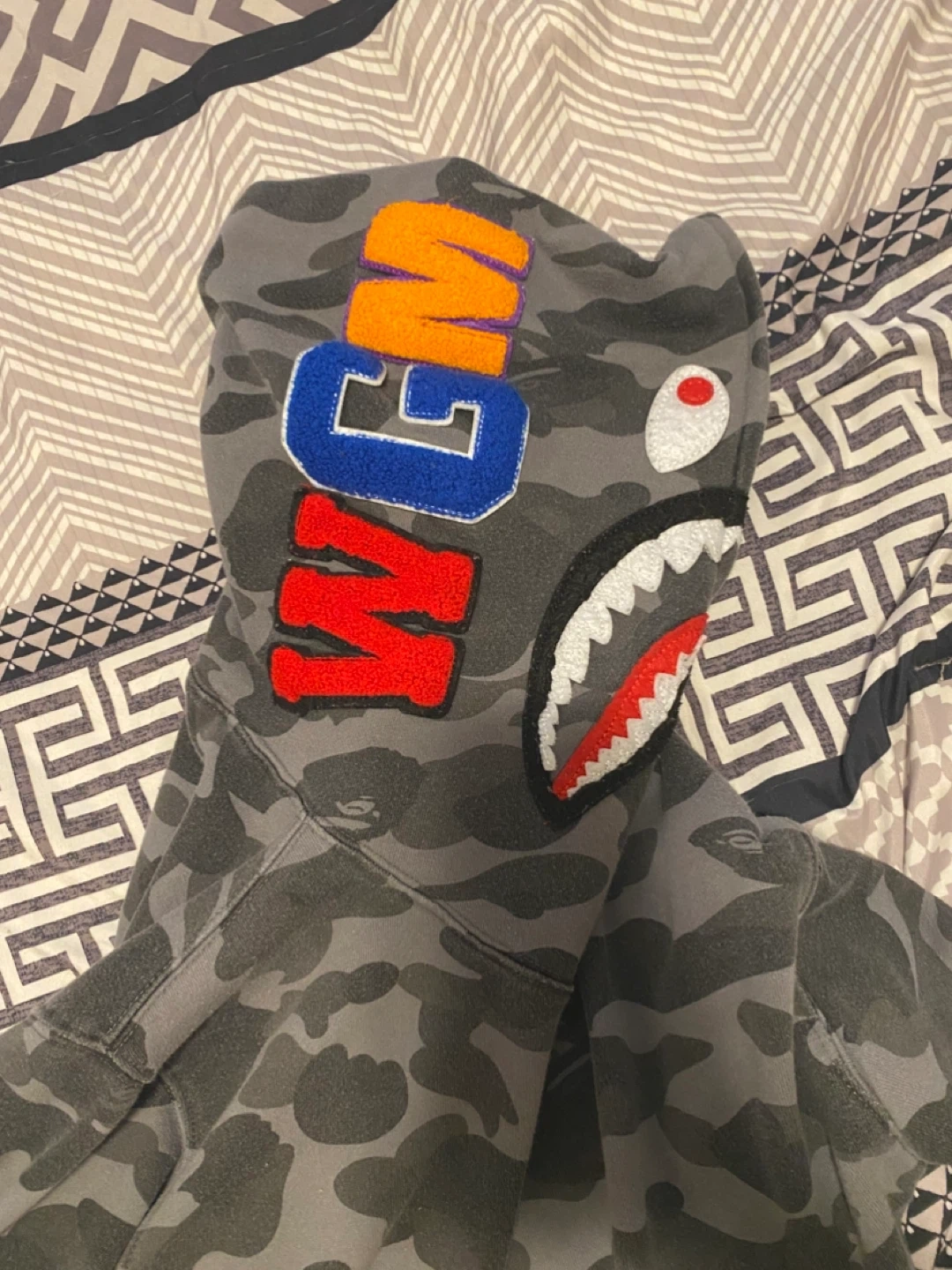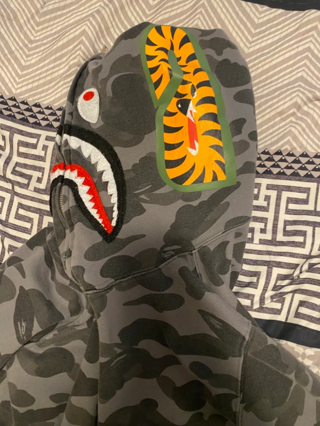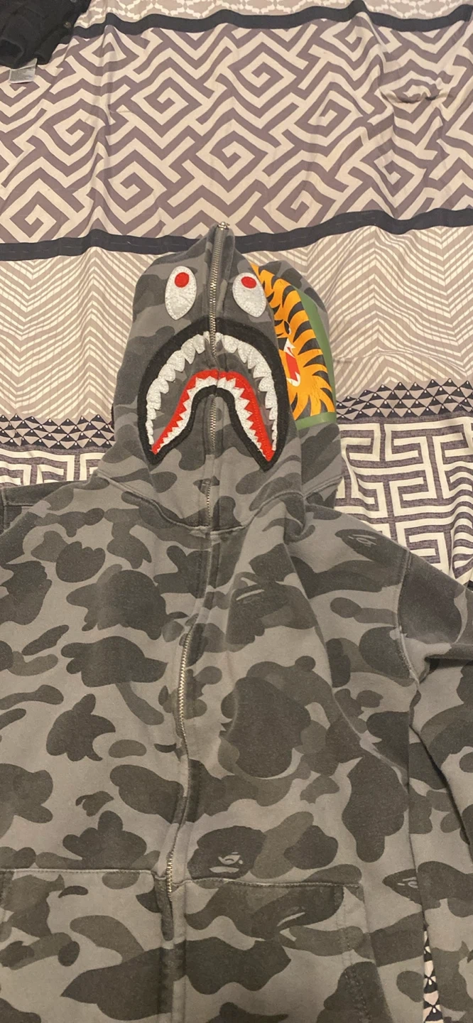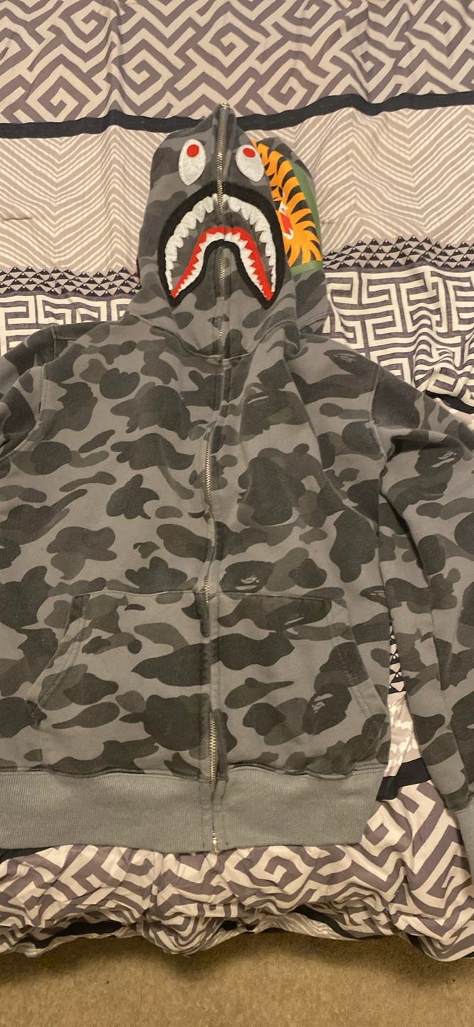 Buy & SellBAPE Full Zip Hoodie Camo Shark FaceBAPE Full Zip Hoodie Camo Shark Face$100This BAPE hoodie features the iconic shark face design with a camouflage pattern. It's a full zip-up with a hood. It's great for casual wear.ConditionLike newSizeMBrandBAPEWHERE TO MEETL1T 4Z6View MapSELLERverifiedEvaWestney Heights791 review1 chats·1 favorites·35 viewsSEND CHAT TO SELLERHi Eva! I’m interested in your listing.Hi Eva! I’m interested in your listing.Get the Karrot app to chatSign In to chat